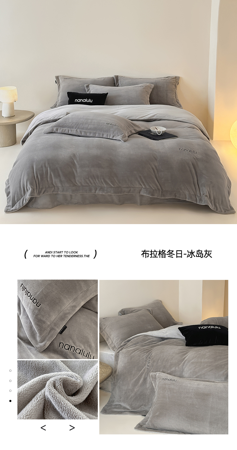 商品名称:JUICY 橘滋家纺 2025新款高奢软糯质感极简慕斯牛奶绒四件套-布拉格冬日 布拉格冬日-冰岛灰
