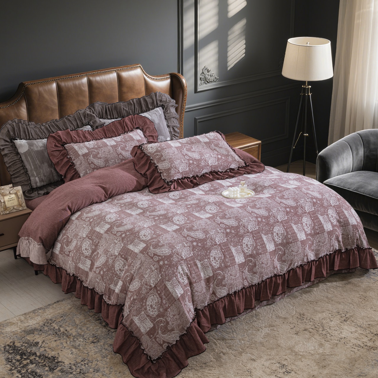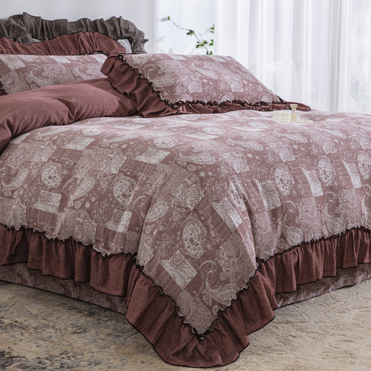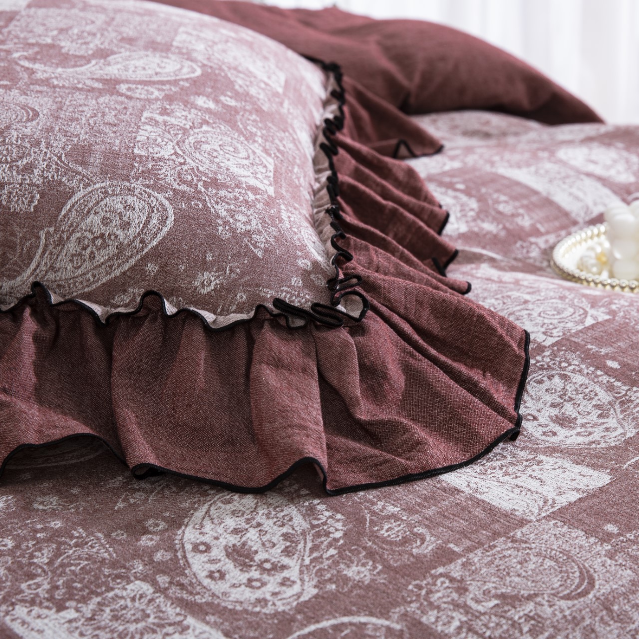 仰望棉麻双层纱供应链 2025新款韩系兰亭序中古风全棉色织提花四件套 兰亭序-咖