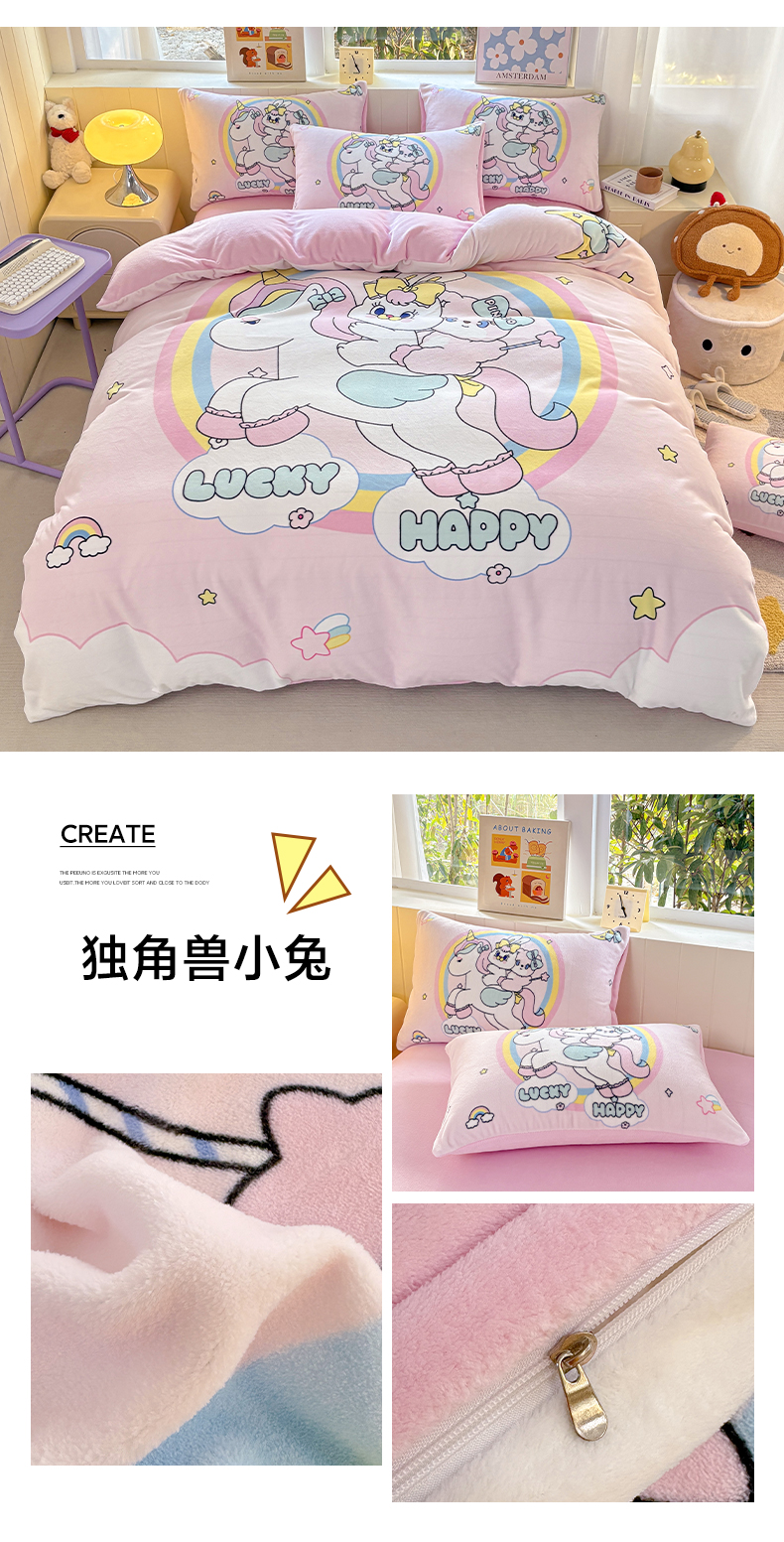 当前位置: 91家纺网 > 商品网购 > 床品套件 > 四件套 > 法莱绒四件套 > ds生活馆 2025新款大版高克重双面牛奶绒四件套 独角兽小兔