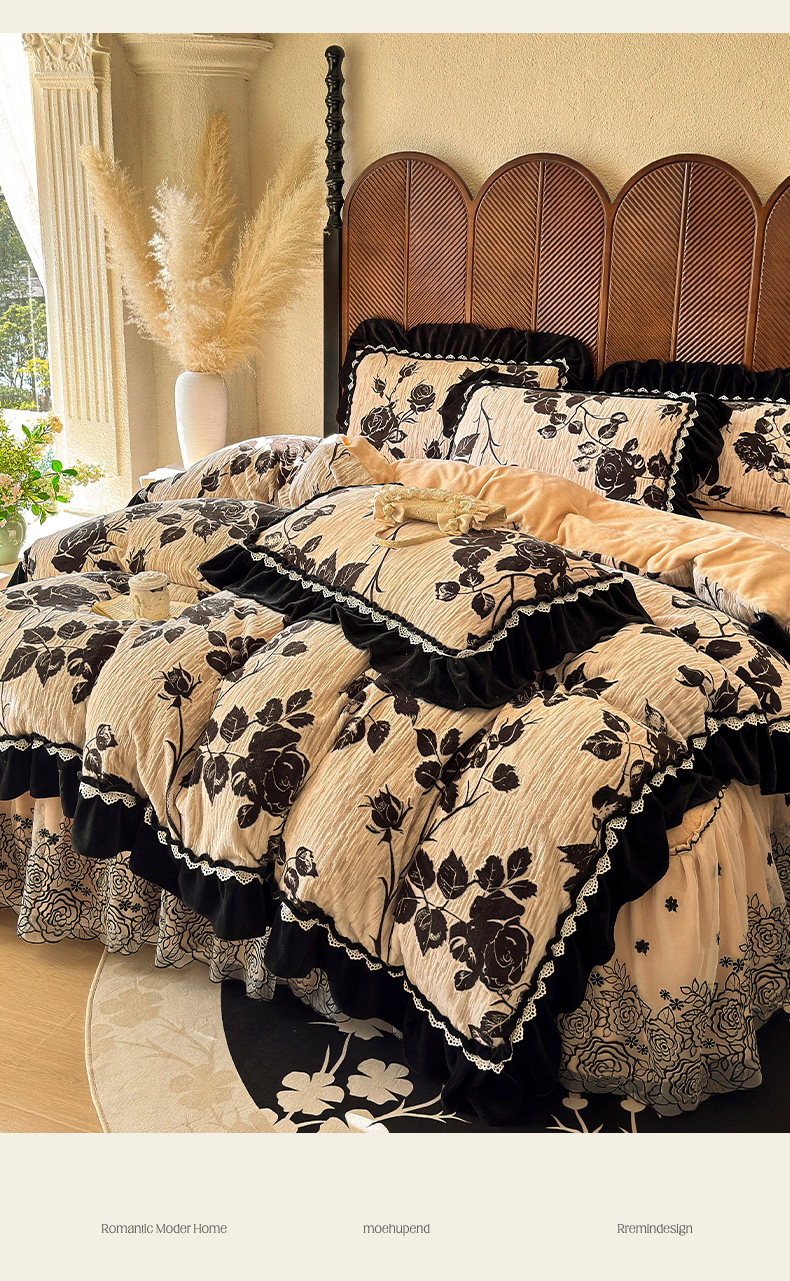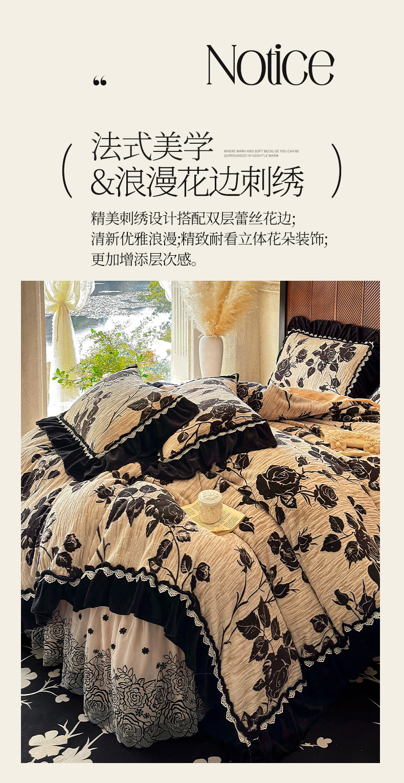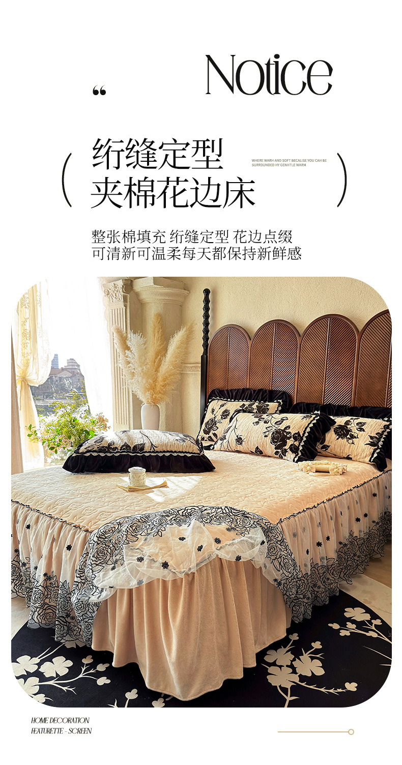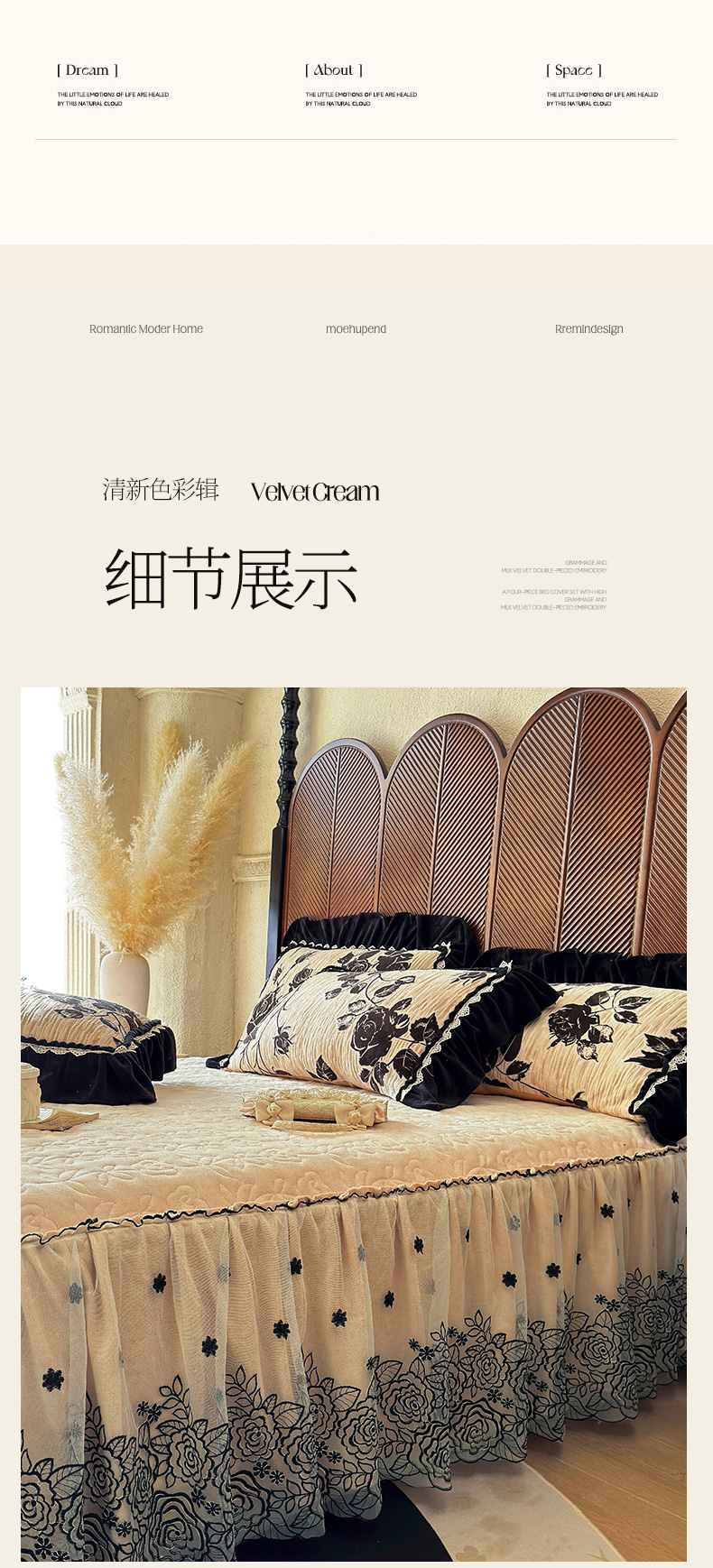 当前位置: 91家纺网 > 商品网购 > 床品套件 > 四件套 > 牛奶绒四件套 > 虹星家纺 2025新款雕花牛奶绒床裙四件套-花溪系列 花溪-奶油黄