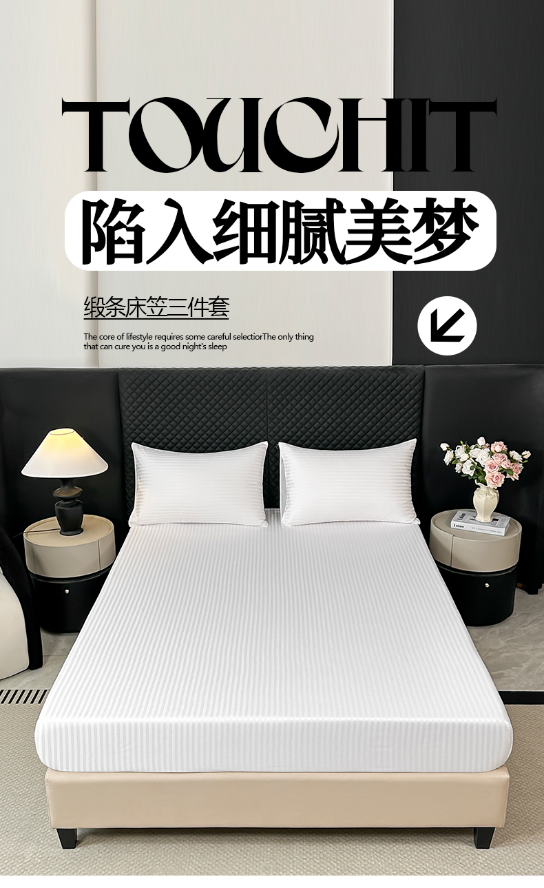 • 91家纺网 家纺一手货源 找家纺 安力森/诚臻酒店用品 2025新款酒店布草床单高支高密缎条款床笠三件套月子中心养老院机构专用床品 迪弗蓝