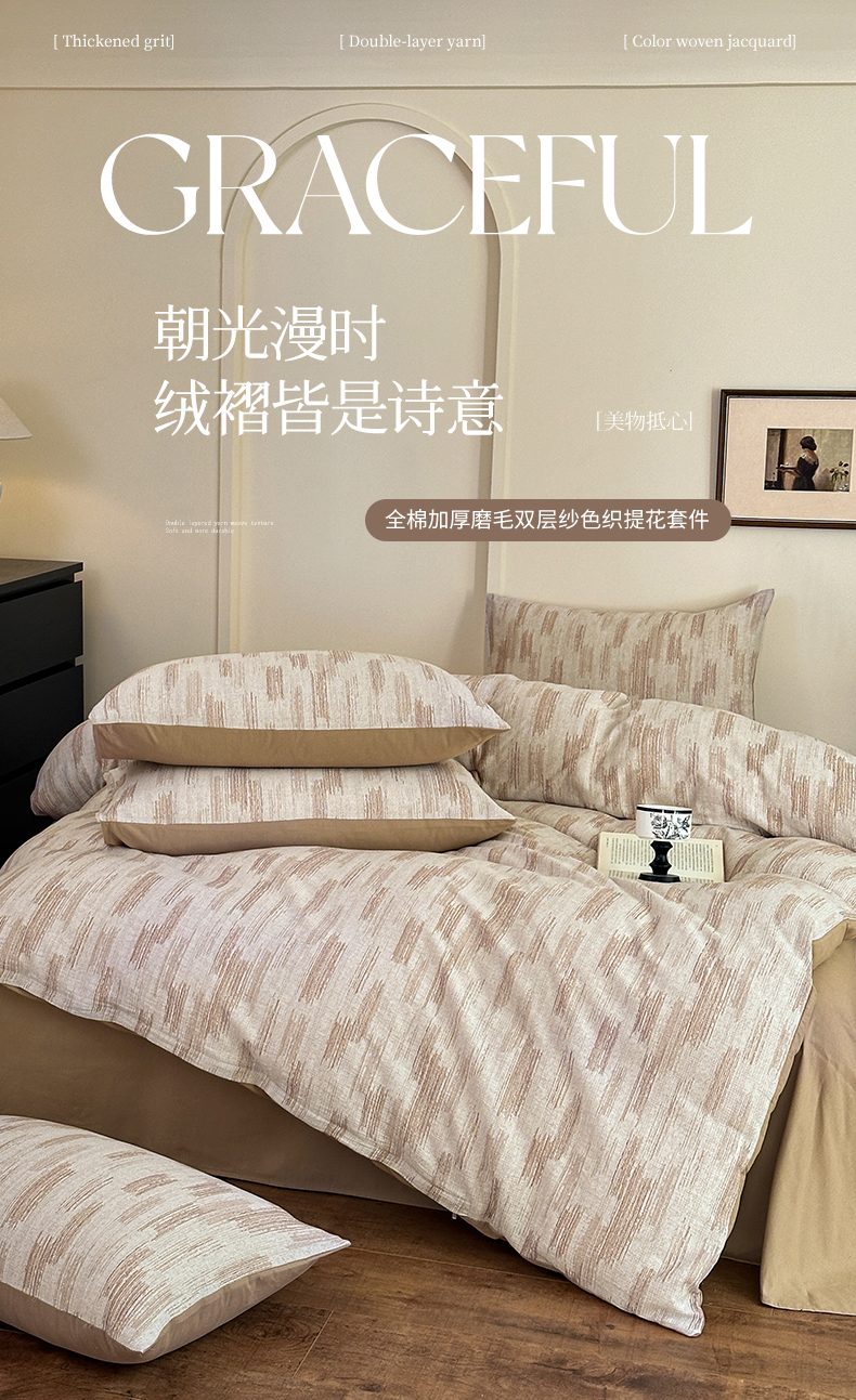 当前位置: 91家纺网 > 商品网购 > 床品套件 > 四件套 > 双层纱四件套 > 小叮当家纺仓储工厂店 (买家秀 爆款花型 不断货)2025新款A类全棉纯棉加厚磨毛双层纱色织提花四件套 追夏
