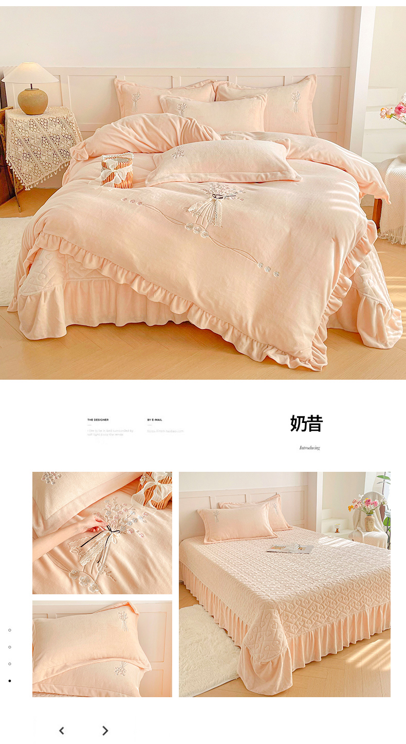 (总)金绣美居 2025新款卡通贴布绣款牛奶绒四件套-公主,公主粉,公主蓝