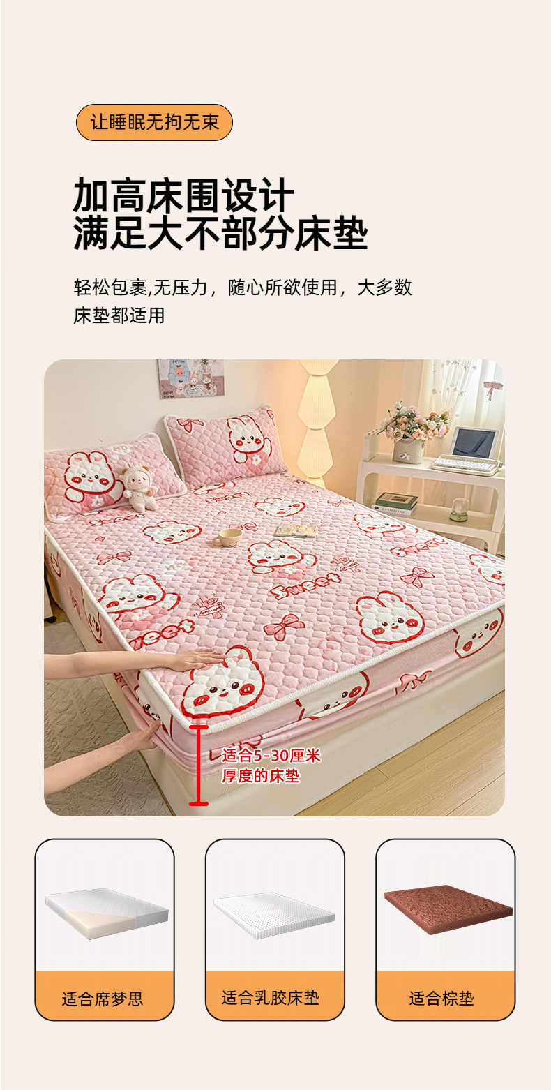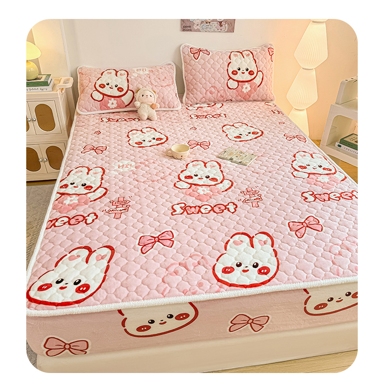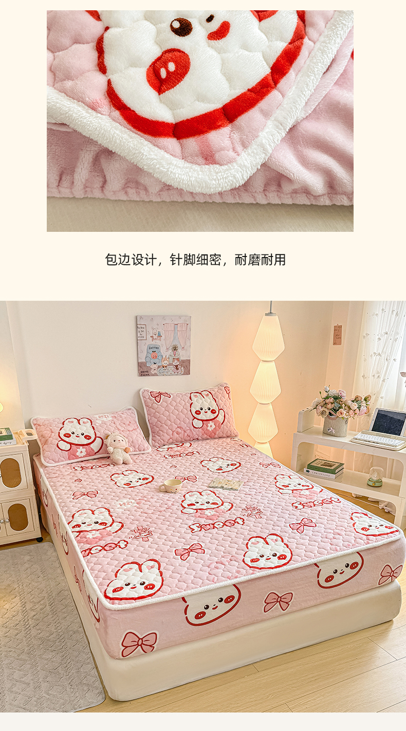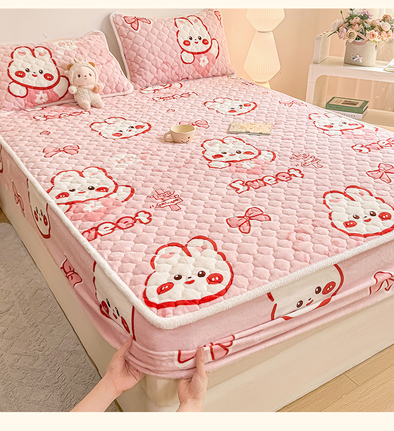 小叮当家纺仓储工厂店 2025新款A类200g高克重牛奶绒印花夹棉床笠单品床笠床笠单件(提供买家秀) 甜粉兔兔