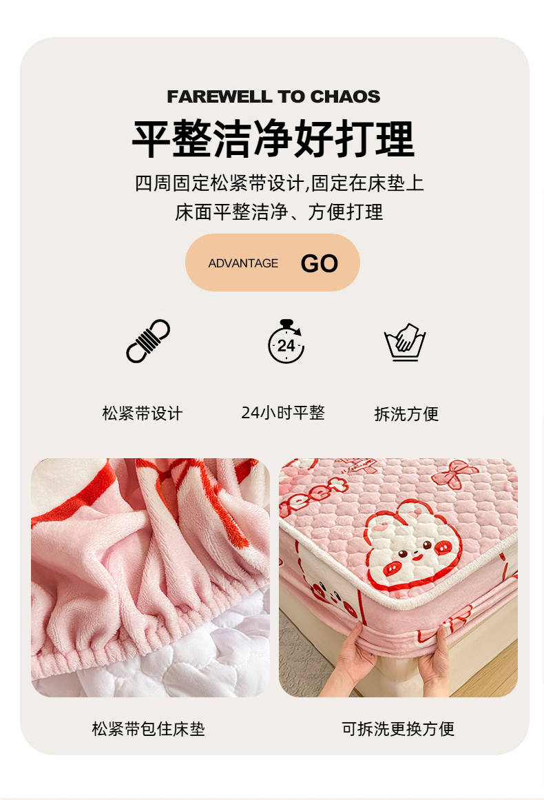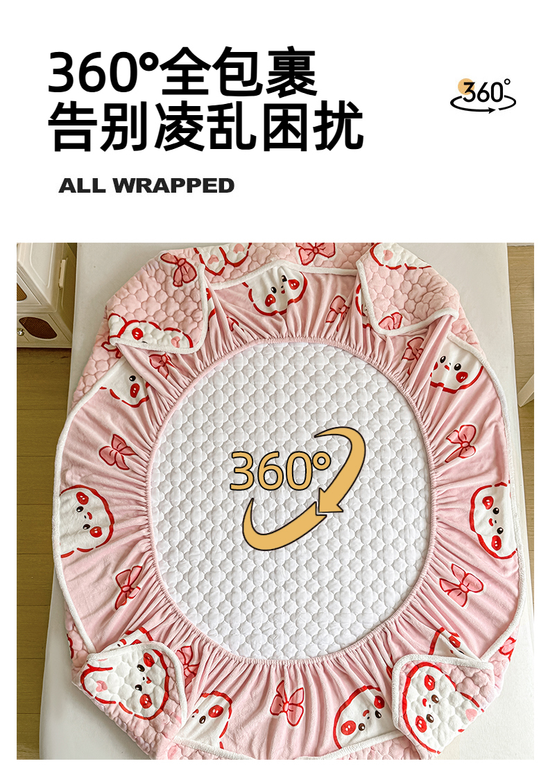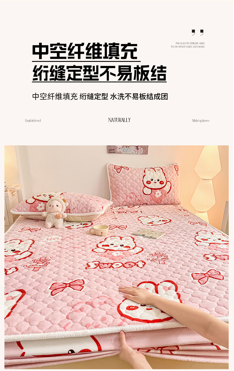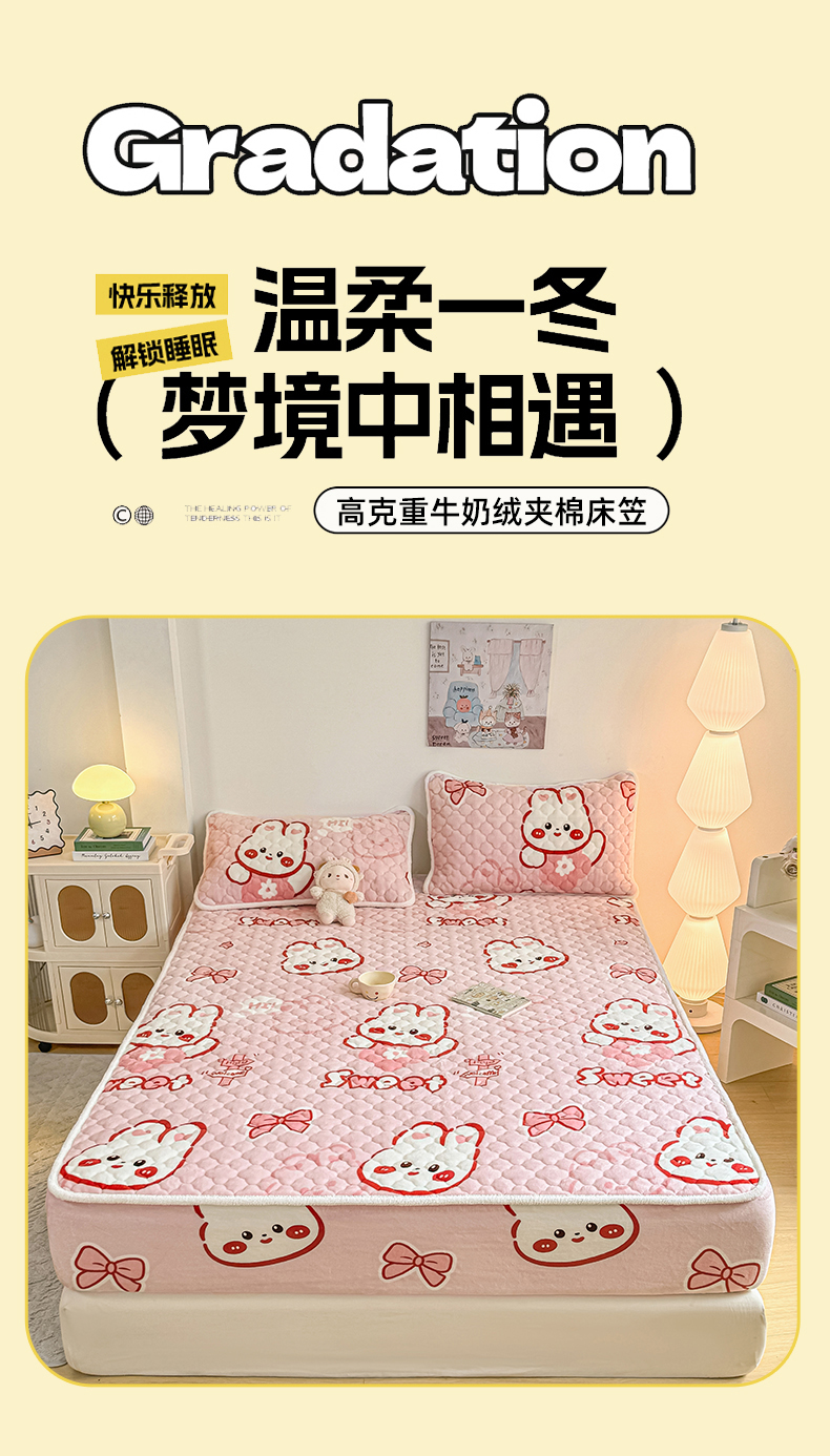 小叮当家纺仓储工厂店 2025新款A类200g高克重牛奶绒印花夹棉床笠单品床笠床笠单件(提供买家秀) 甜粉兔兔