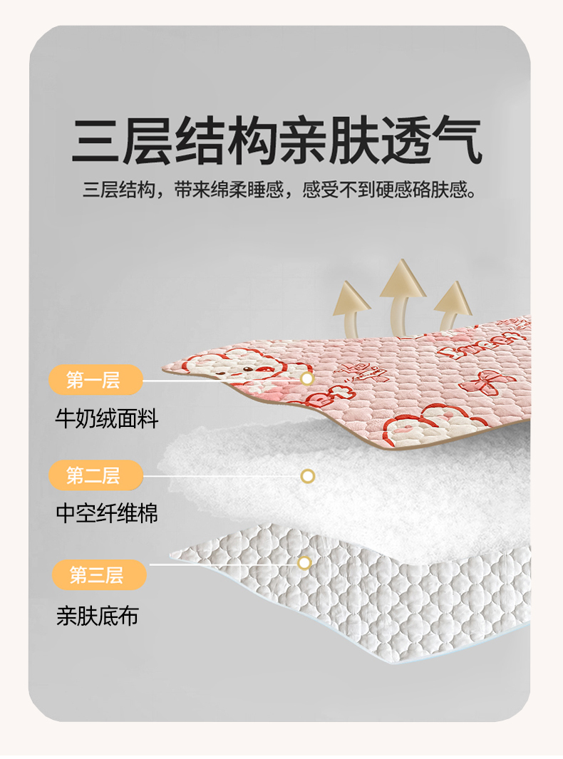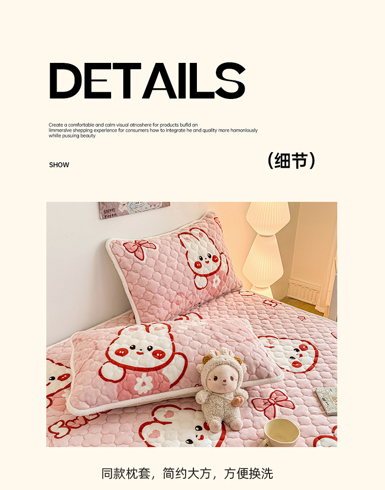 商品名称:小叮当家纺仓储工厂店 2025新款A类200g高克重牛奶绒印花夹棉床笠单品床笠床笠单件(提供买家秀) 甜粉兔兔