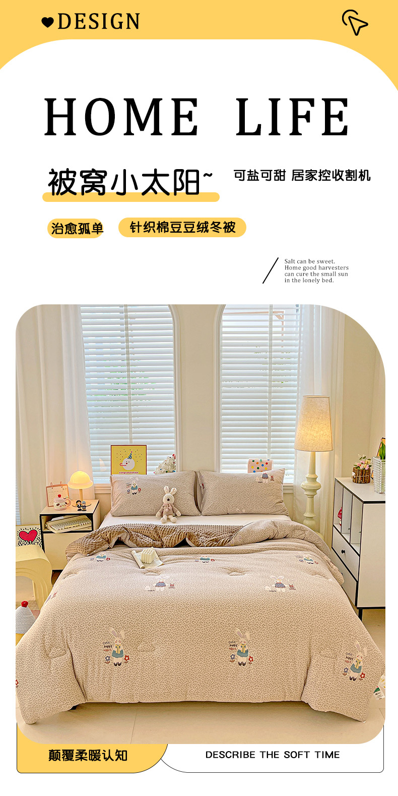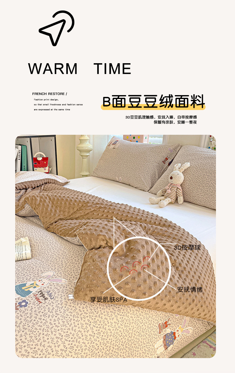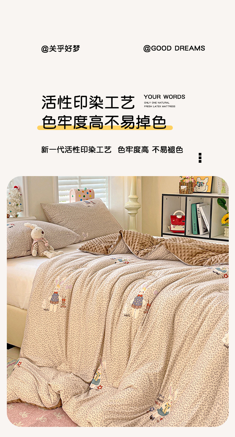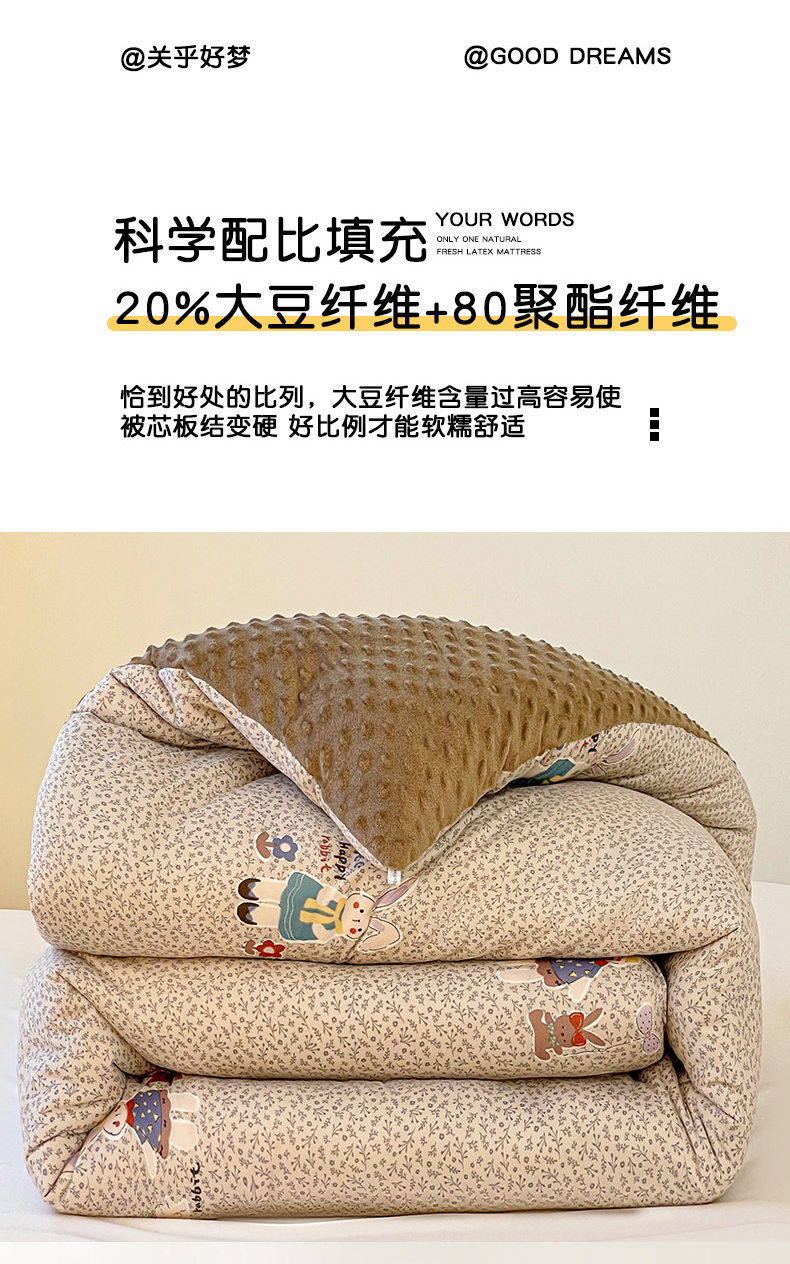 • 91家纺网 家纺一手货源 找家纺 小叮当家纺仓储工厂店 2025新款A类母婴级宝宝被子牛奶丝针织棉豆豆被豆豆被子儿童婴童大豆被精品买家秀 花间兔