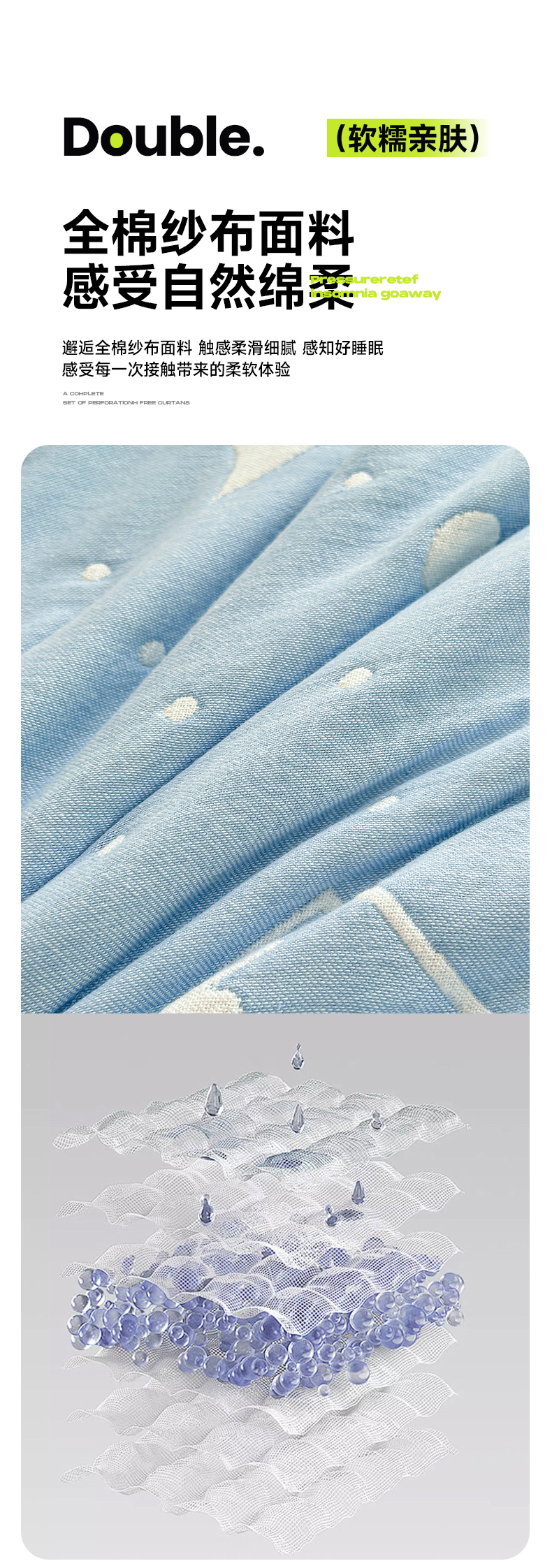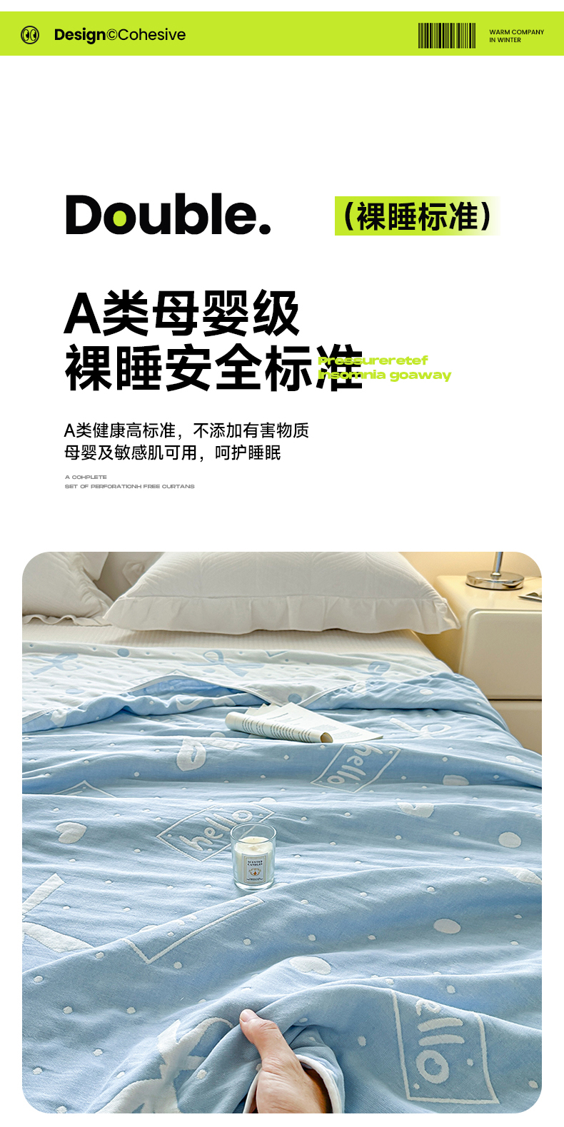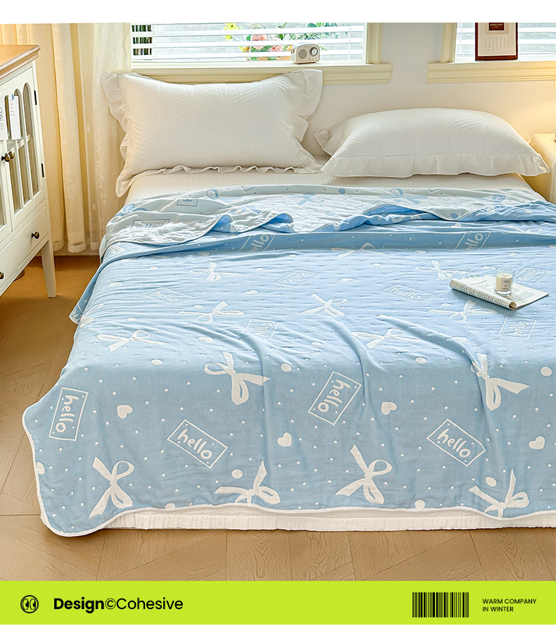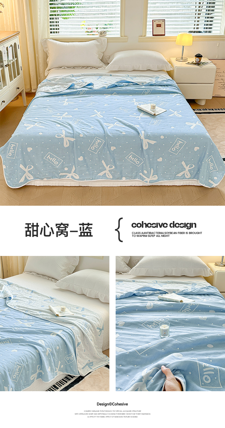 商品名称:小叮当家纺仓储工厂店 (买家秀 爆款花型 不断货)2025新款全棉六层纱布毛巾被系列 草莓果奶-绿