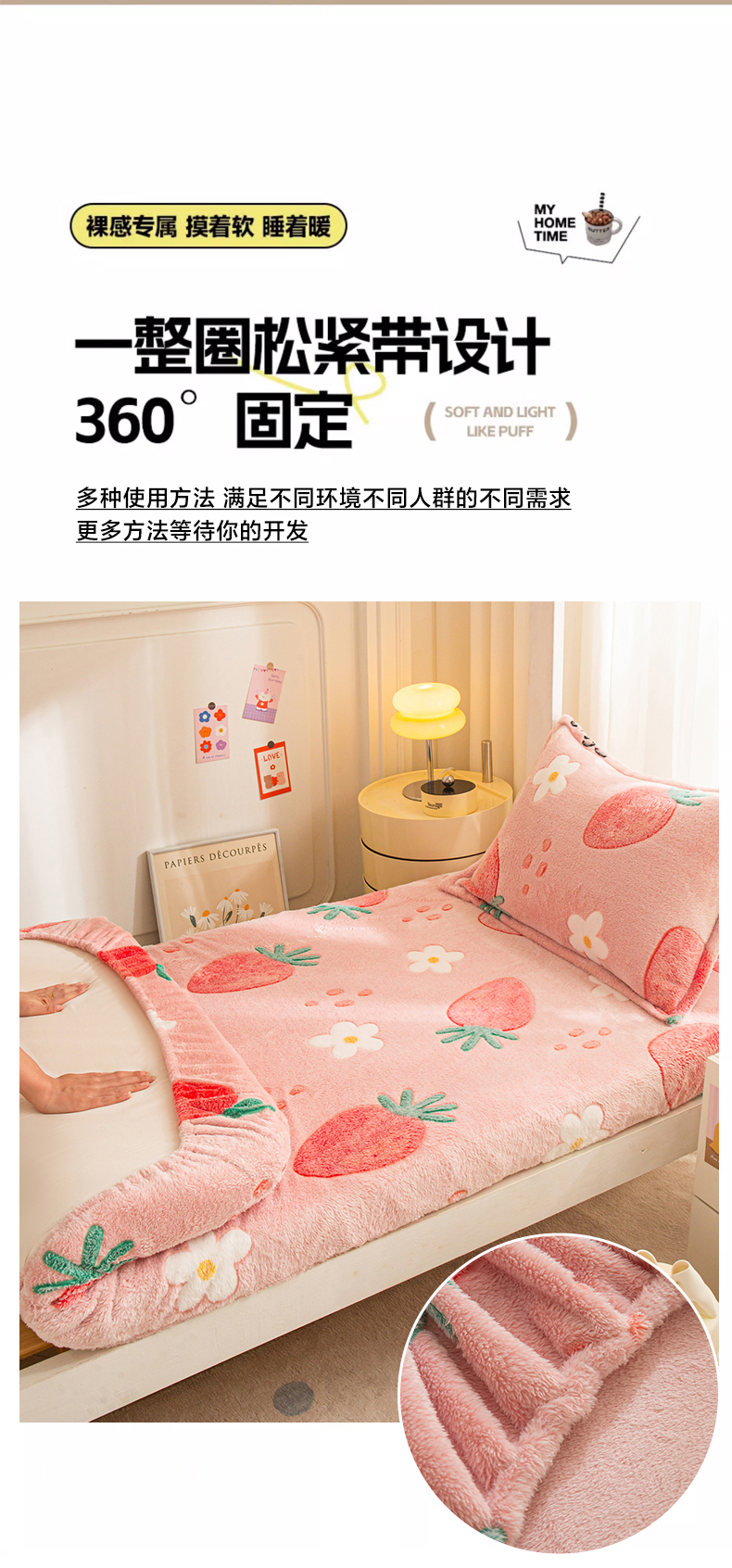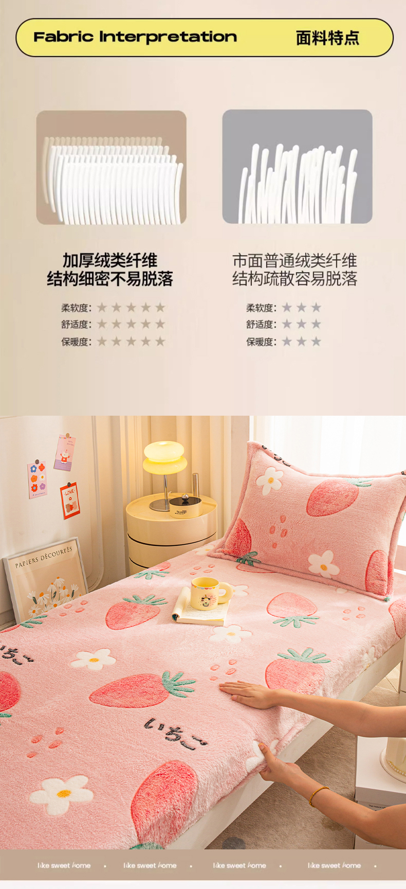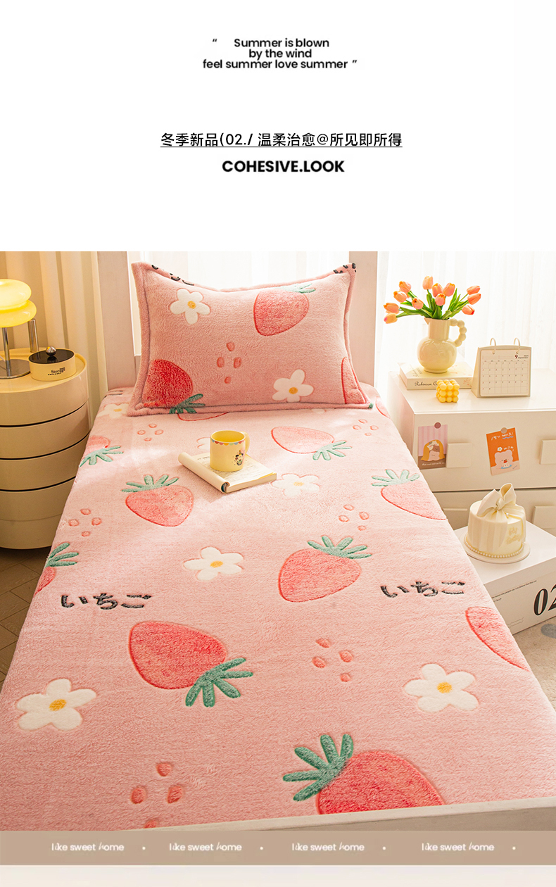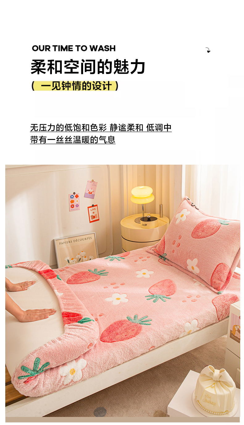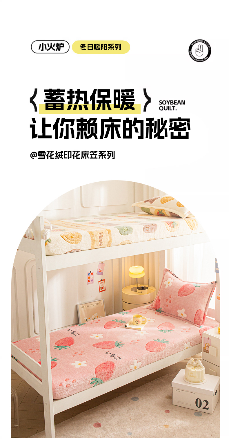 • 91家纺网 家纺一手货源 找家纺 小叮当家纺仓储工厂店 【长期供货】2025新款雪花绒学生床单床笠单品床笠单件床笠【支持小批量定制】 R草莓