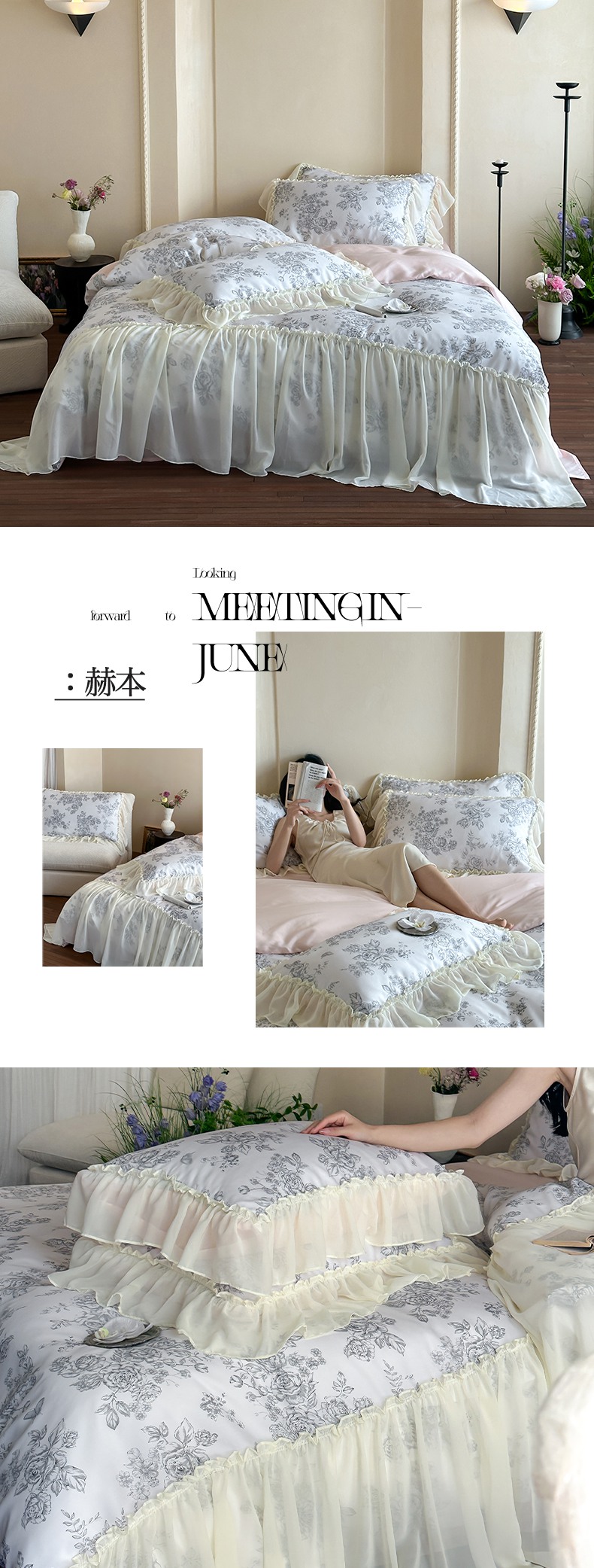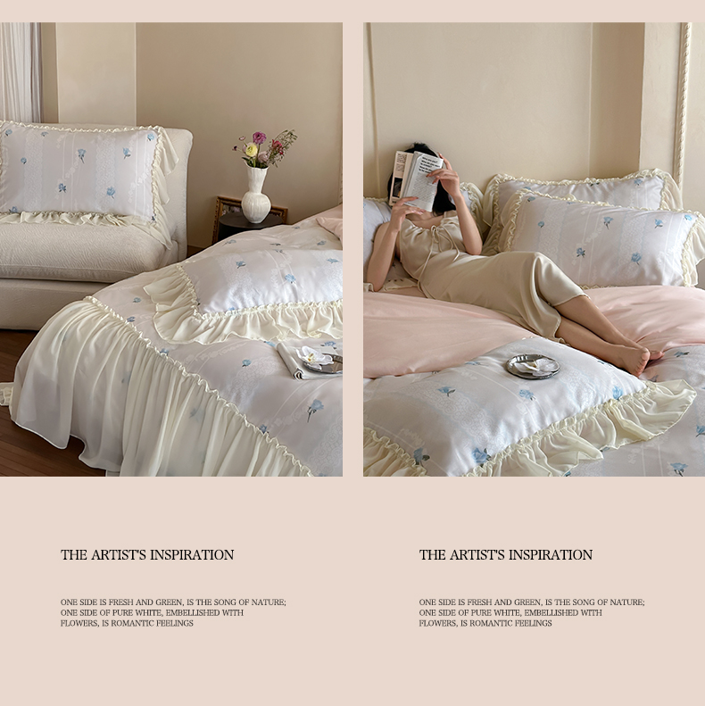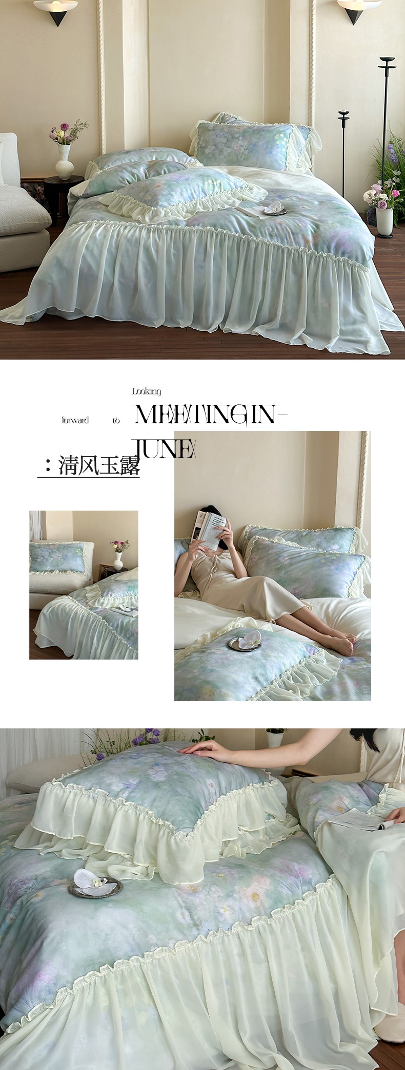 (总)咏绒家纺工厂店 2025新款莱赛尔法式闺房风雪纺花边款四件套