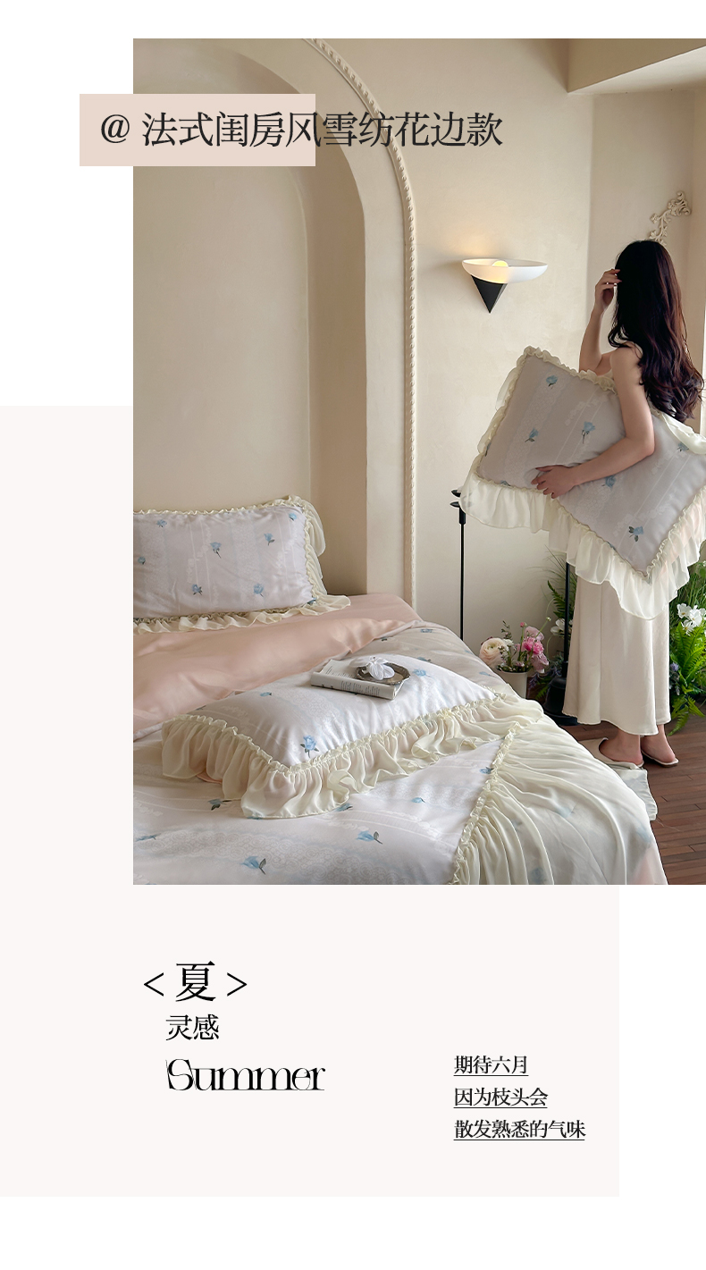 商品名称:(总)咏绒家纺工厂店 2025新款莱赛尔法式闺房风雪纺花边款四件套