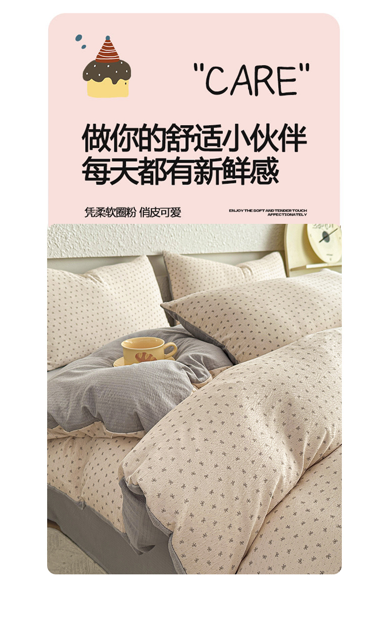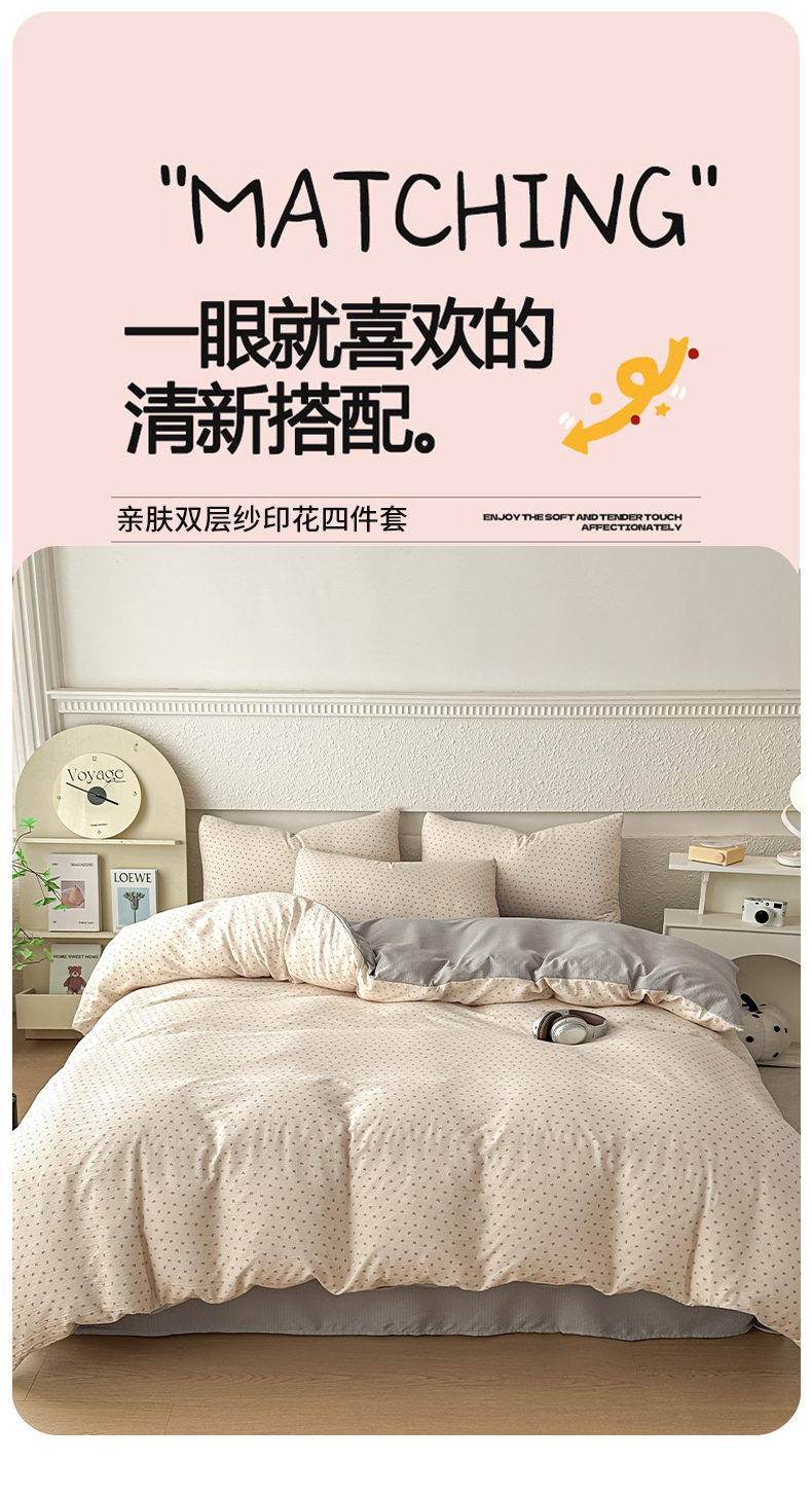 当前位置: 91家纺网 > 商品网购 > 床品套件 > 四件套 > 水洗棉四件套 > 麦乐迪 2026年新款A类抗菌云感双层纱印花四件套(提高买家秀) 米灰蝴蝶结