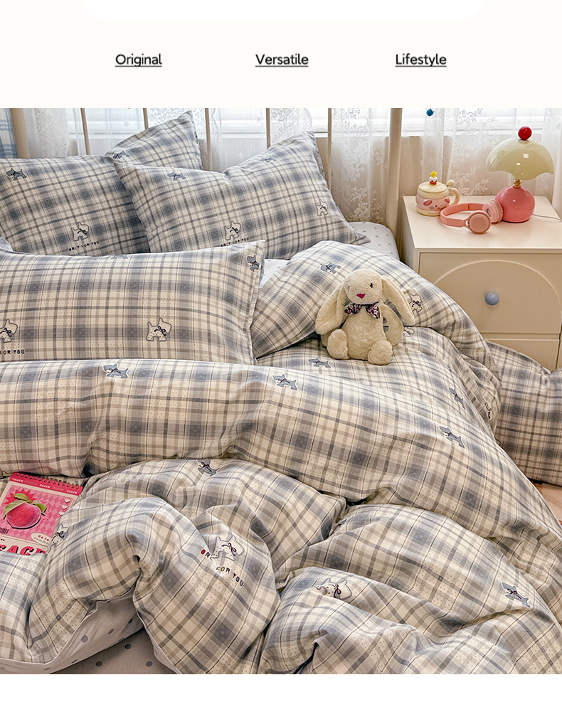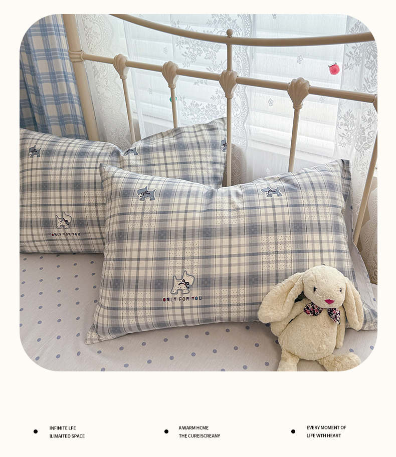 简宜家居(朝初家纺) 2025新款12868全棉兔与花笺系列四件套 木马蓝格