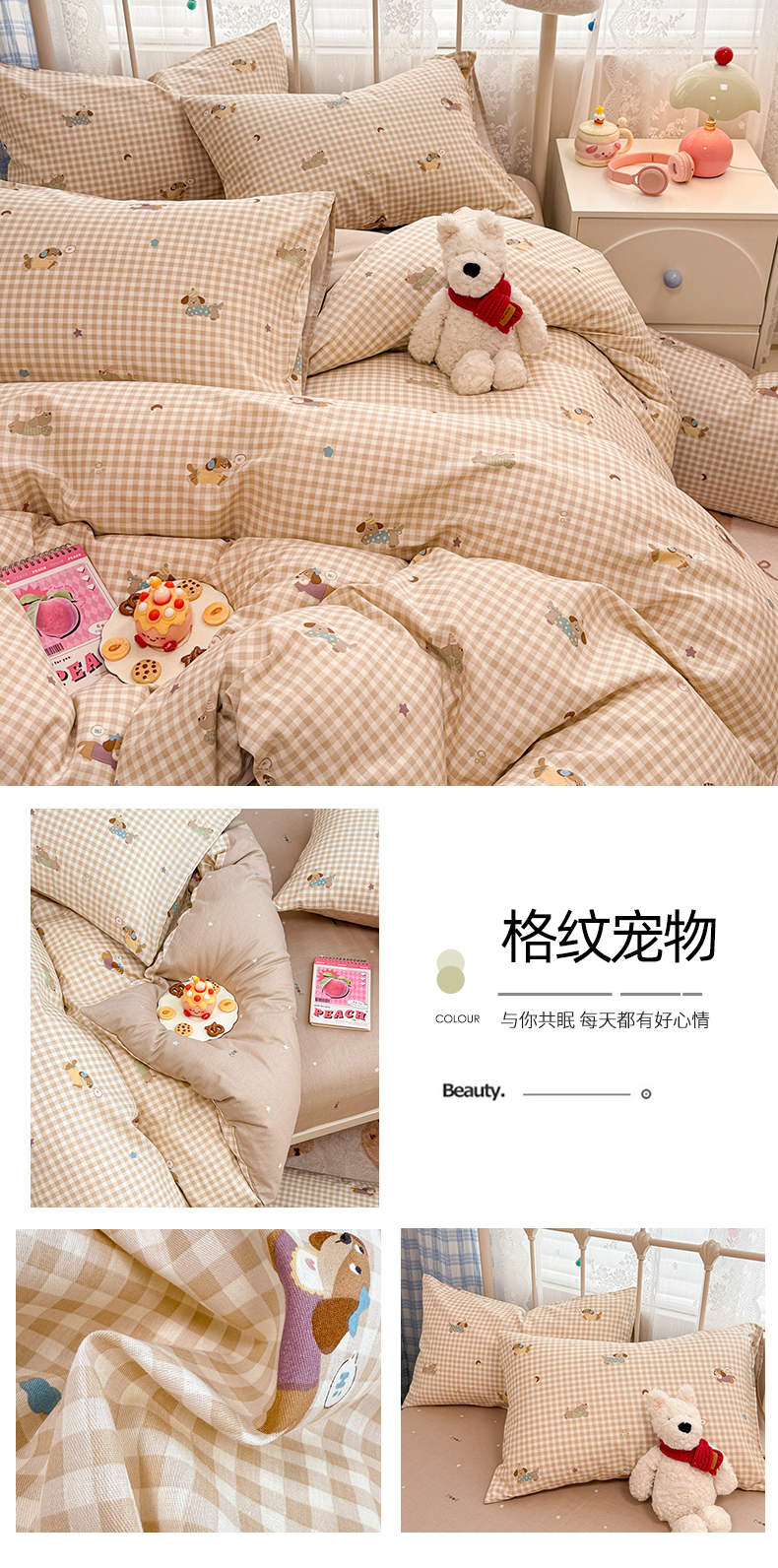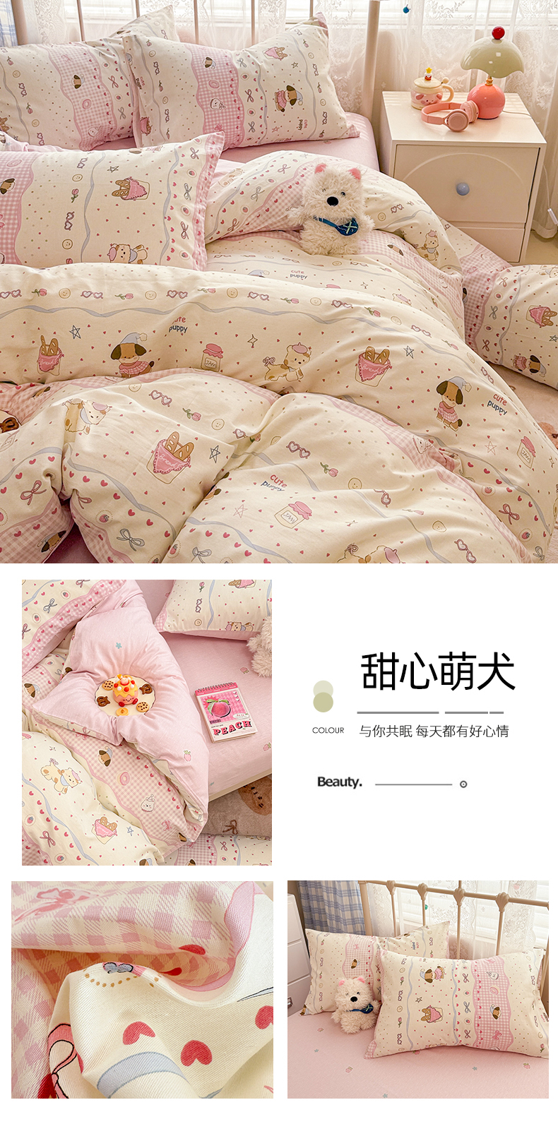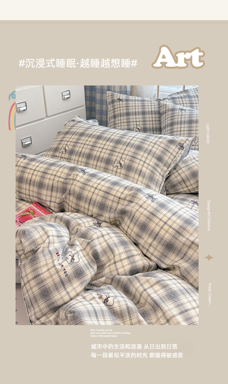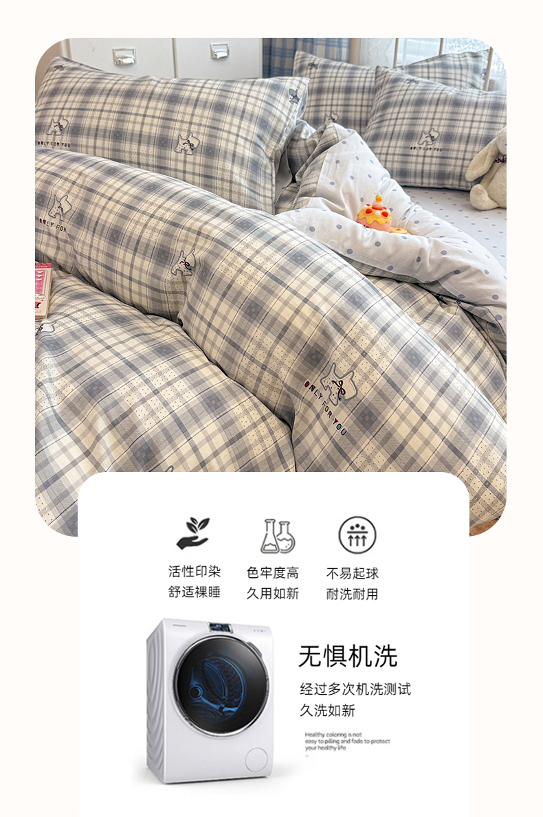 简宜2023新款13070纯棉全棉40支斜纹卡通小清新学生三件套四件套,花园兔,紫葡仙子,倩影粉,hello 萌熊,嘟嘟小车,简笔画,开心小黄鸭,梦幻城堡,浓情爱意
