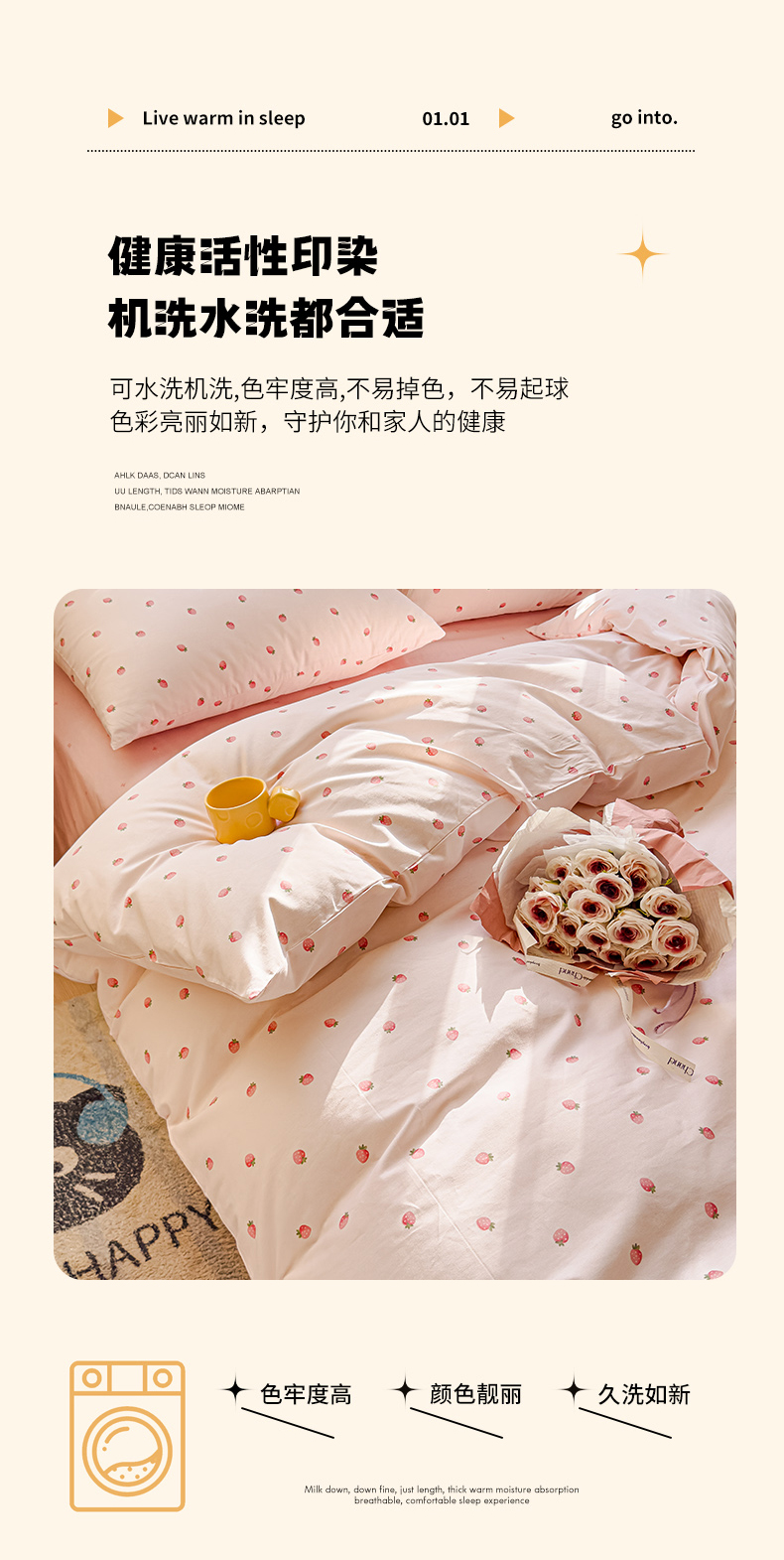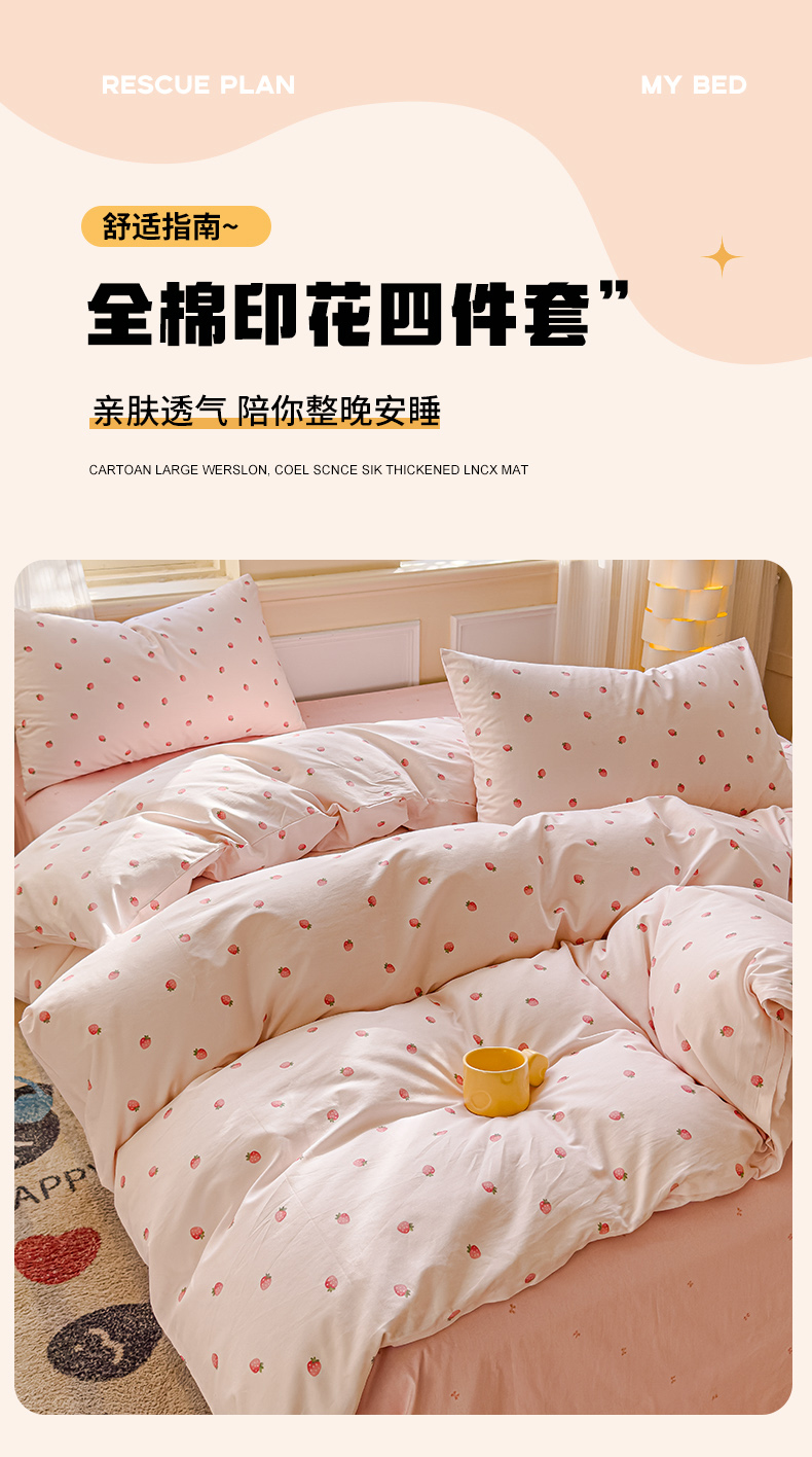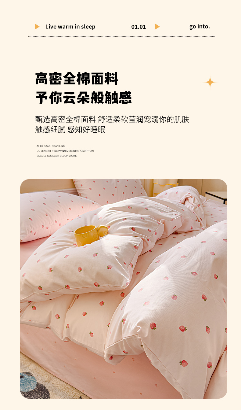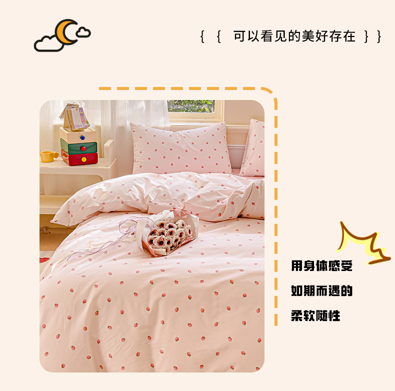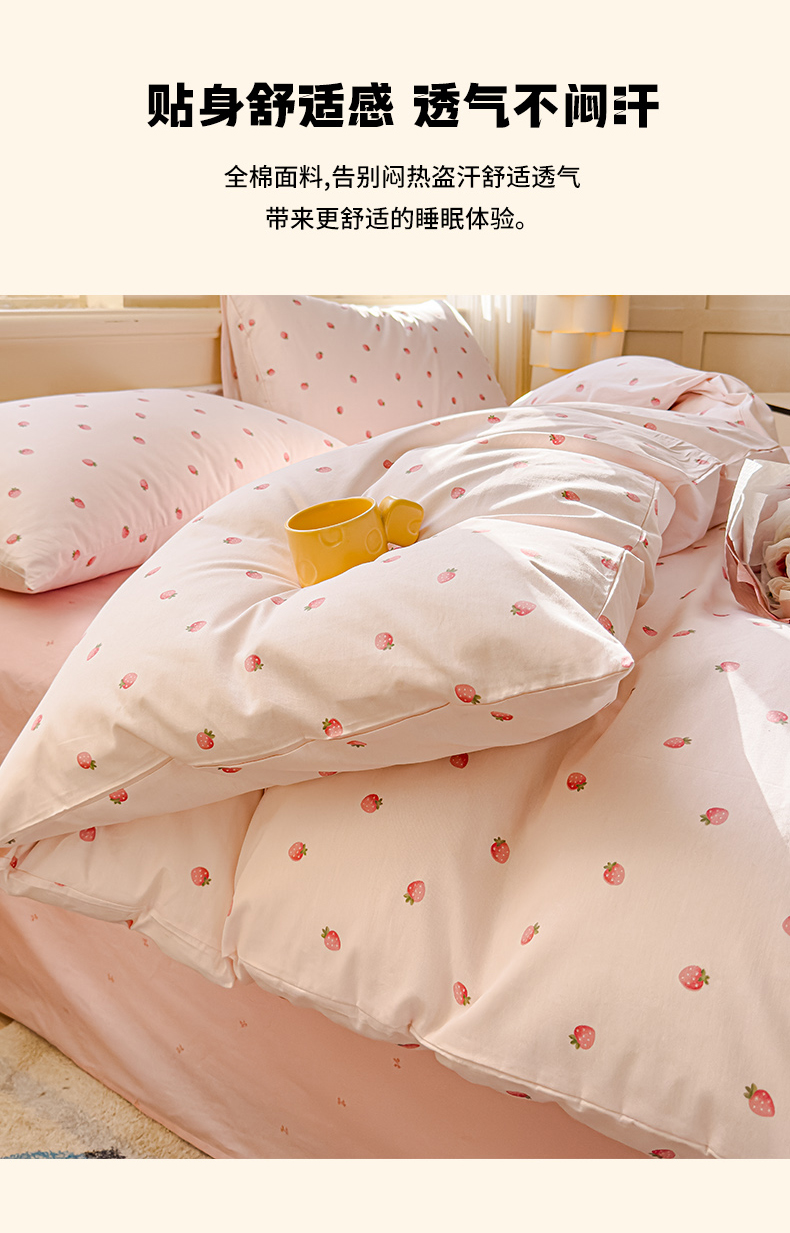当前位置: 91家纺网 > 商品网购 > 床品套件 > 四件套 > 全棉普通四件套 > 感遇家纺 2026新款全棉纯棉印花13372四件套 草莓小园
