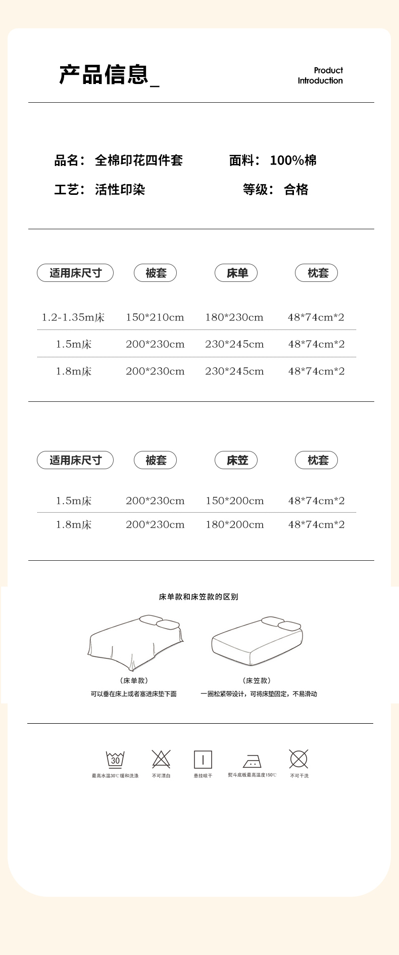 【床笠款】1.8四件套-被套200x230 | ¥120.00 |