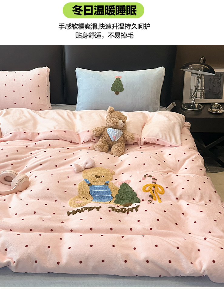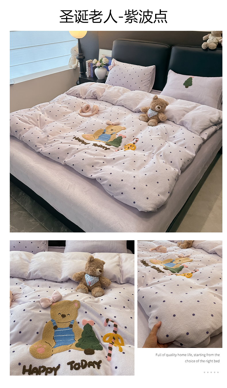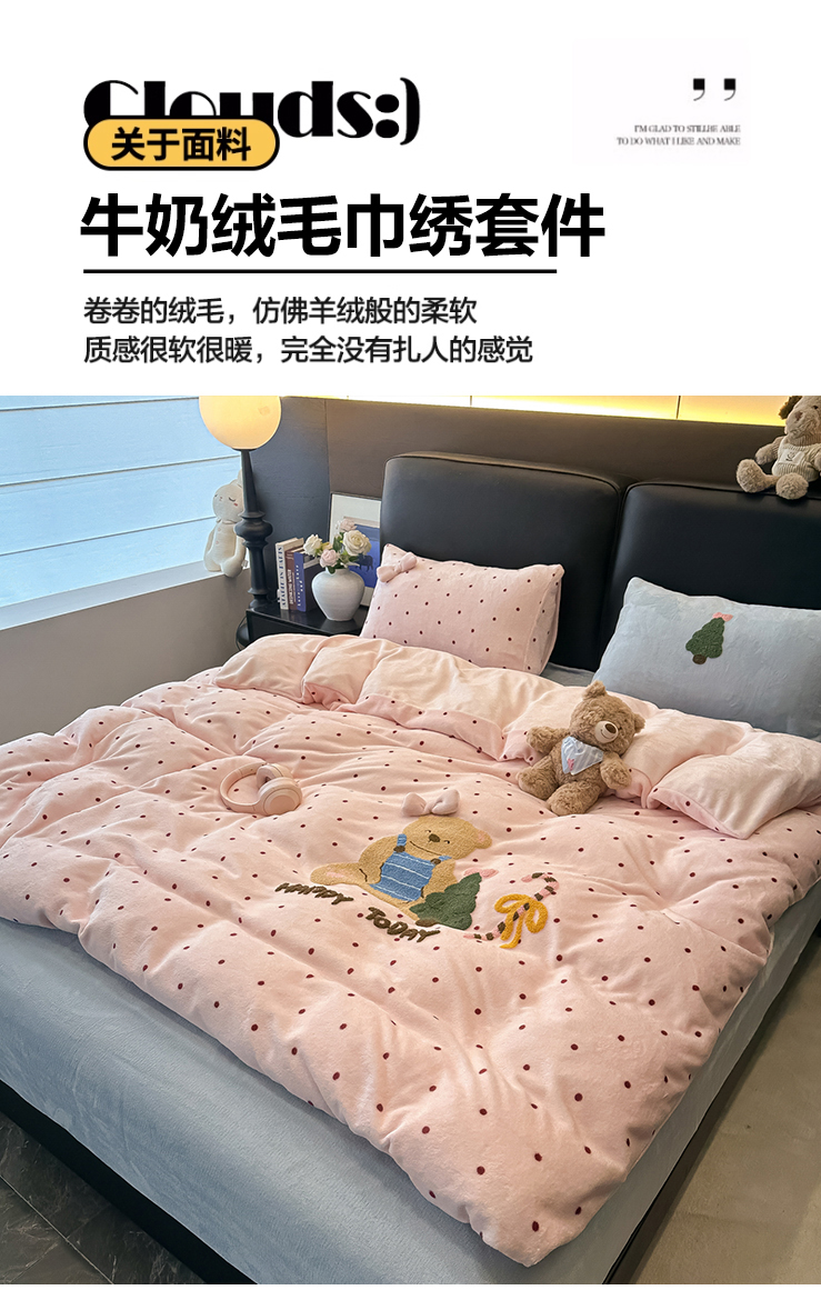 (总)子钦家纺 2025秋冬新款加厚牛奶绒撸猫感毛巾绣四件套-圣诞小熊,圣诞小熊-粉波点,圣诞小熊-奶波点,圣诞小熊-七彩爱心,圣诞小熊-七彩格,圣诞小熊-紫波点