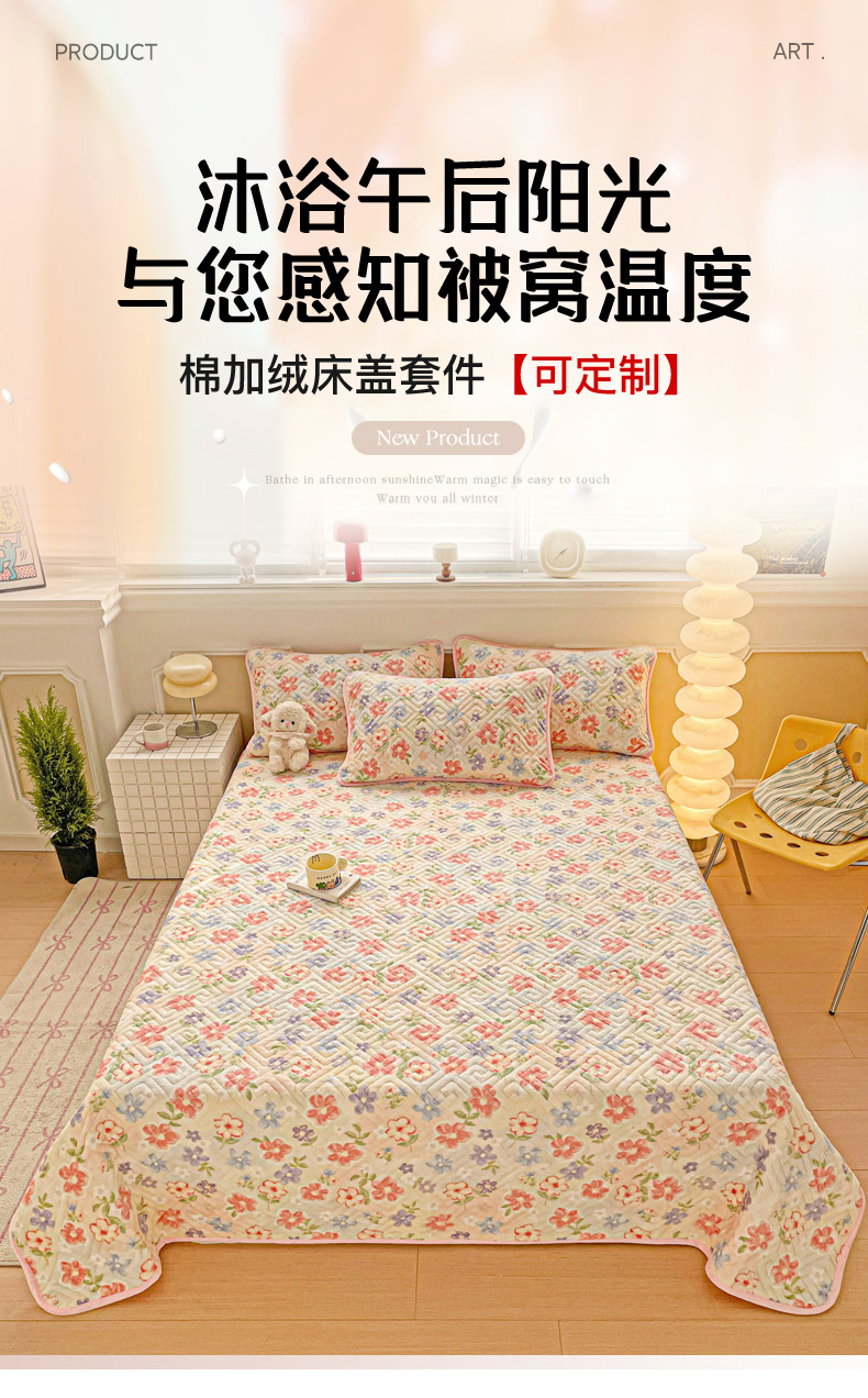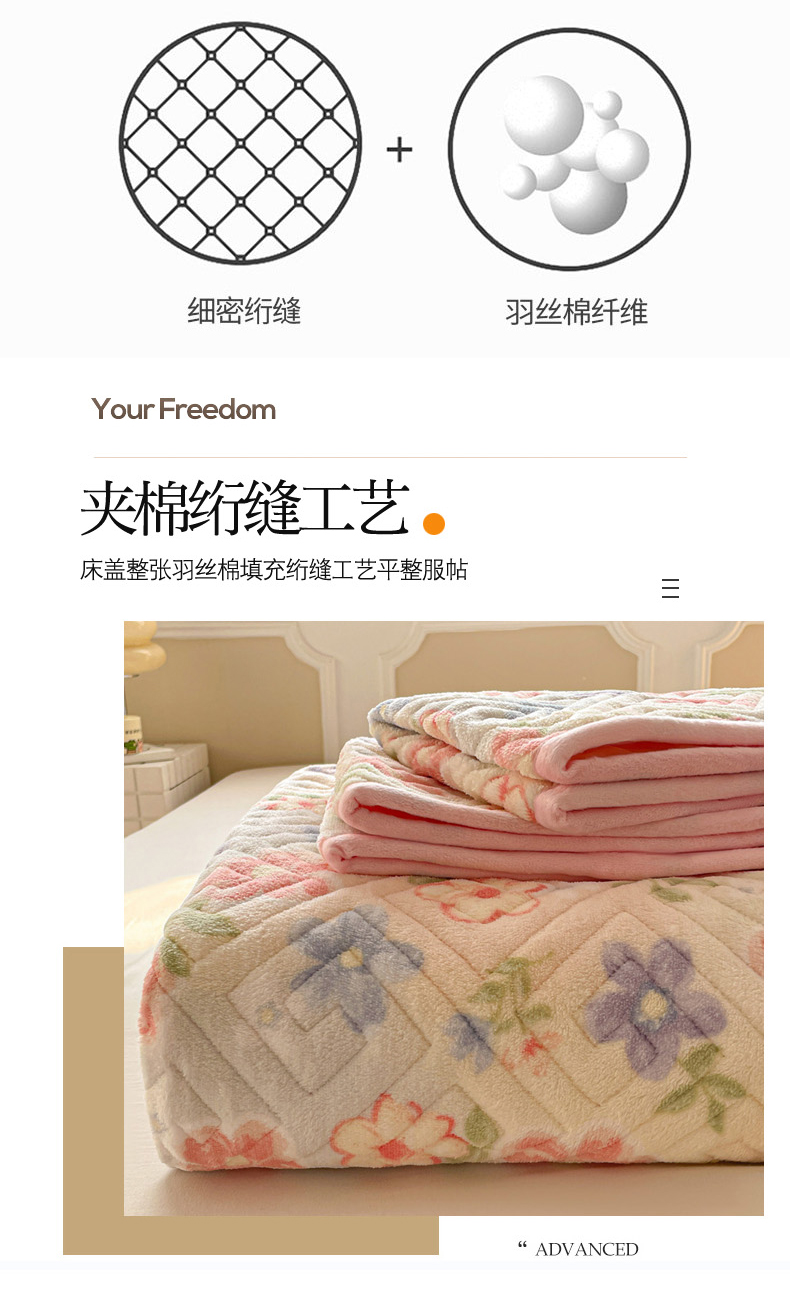 • 91家纺网 家纺一手货源 找家纺 羽爱 2025新款棉加绒床盖套件 春意花影