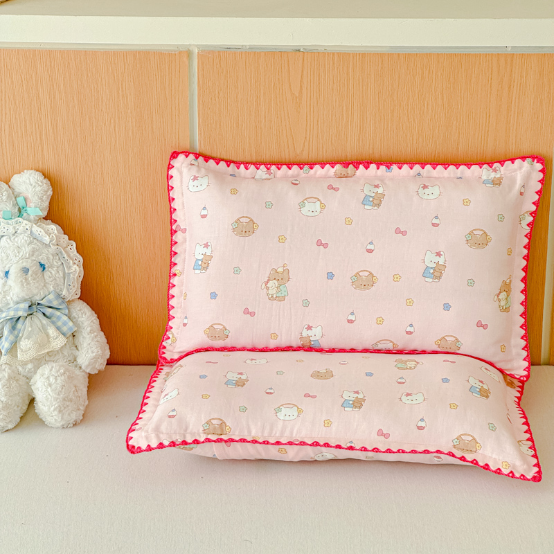 (总)金丝鸟家纺 2026新款全棉双层纱毛球款枕套多规格儿童枕套,叠拍组合图仅供展示,查理卧室,奇迹动物园 米,软萌游园会,吐司乐园