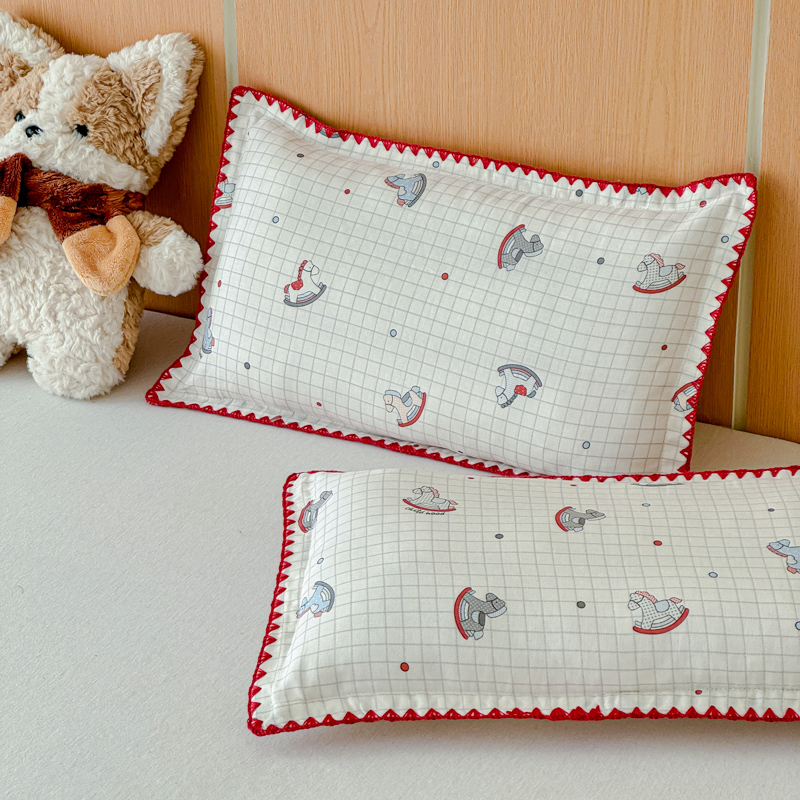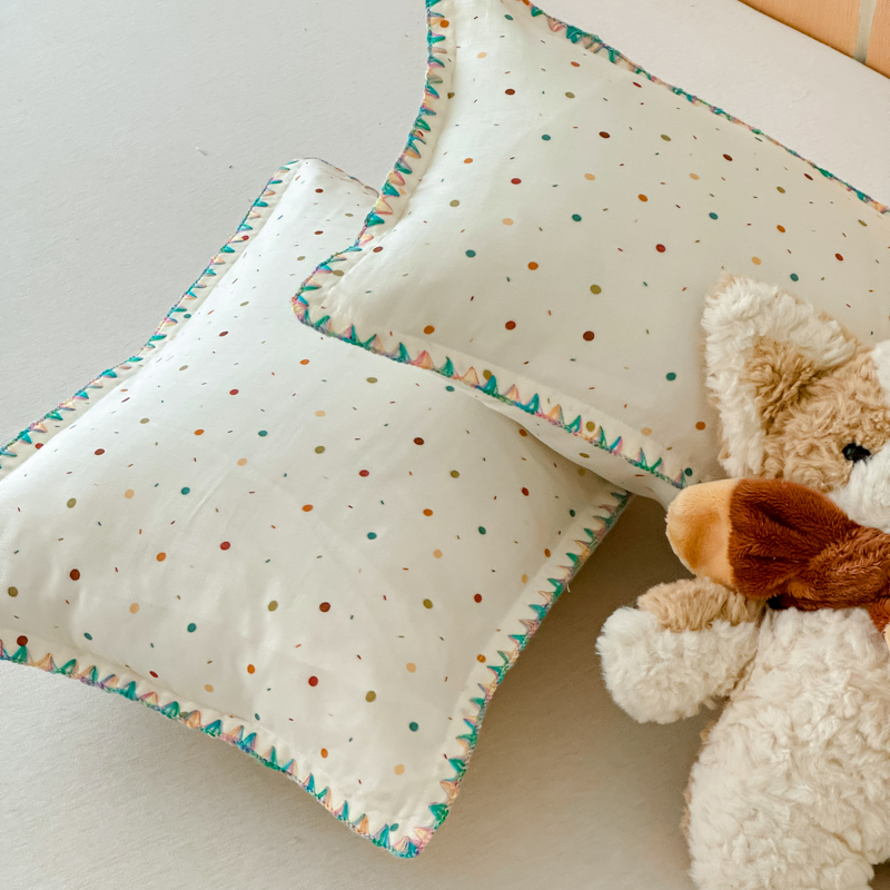 金丝鸟家纺 2026新款全棉双层纱贝壳边款枕套多规格儿童枕套 彩色玻璃球