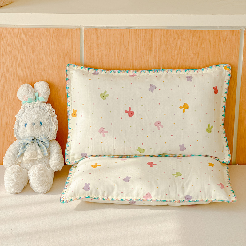 商品名称:金丝鸟家纺 2026新款全棉双层纱贝壳边款枕套多规格儿童枕套 芋泥兔兔 兰