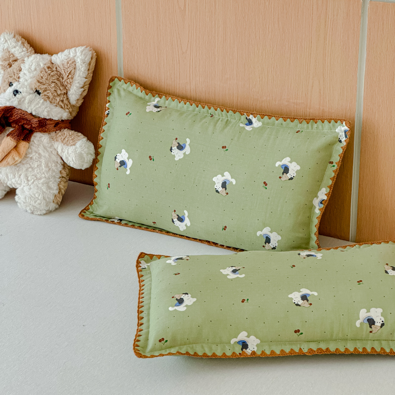 (总)金丝鸟家纺 2026新款全棉双层纱毛球款枕套多规格儿童枕套,叠拍组合图仅供展示,查理卧室,奇迹动物园 米,软萌游园会,吐司乐园