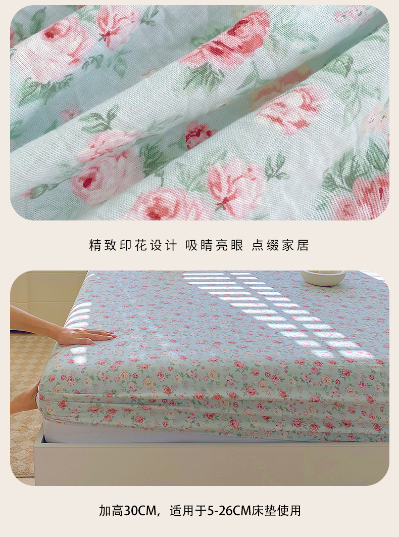 (总)春皖家纺 2026新款A类全棉有氧双层纱印花四件套单品系列-单床笠,桂语兰庭,暮春,雾染玫瑰,晴丝一缕,青茵,花町,旧梦朝花,花织,雾色里德,雾棕