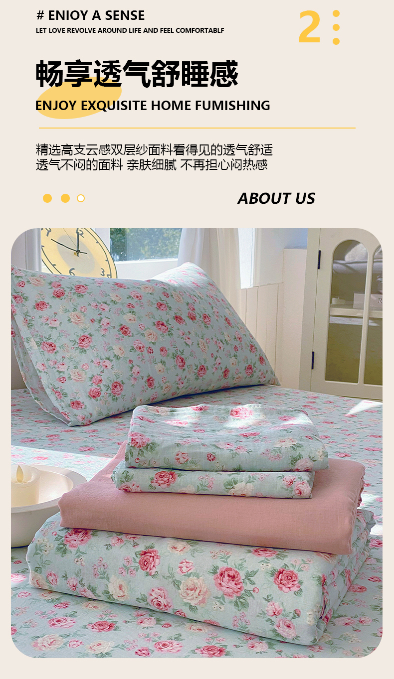 (总)春皖家纺 2026新款A类全棉有氧双层纱印花四件套单品系列-四件套,桂语兰庭,花织,雾染玫瑰,晴丝一缕,暮春,旧梦朝花,青茵,花町,雾色里德,雾棕