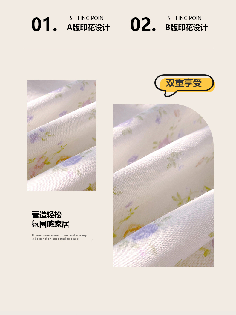 (总)春皖家纺 2026新款A类全棉有氧双层纱印花四件套单品系列-四件套,桂语兰庭,花织,雾染玫瑰,晴丝一缕,暮春,旧梦朝花,青茵,花町,雾色里德,雾棕