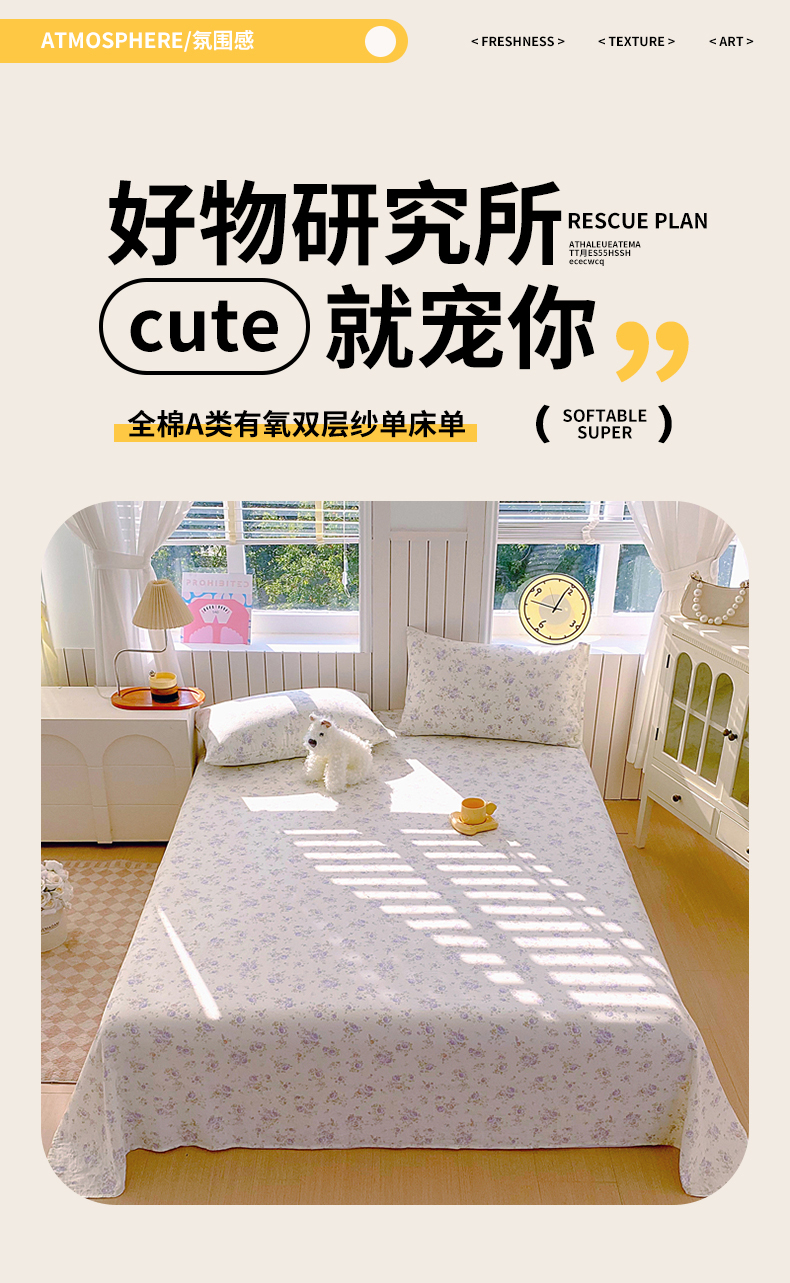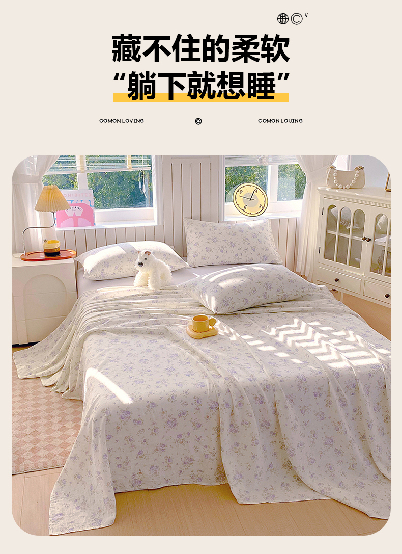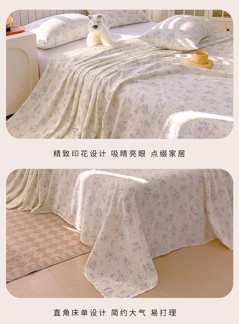 (总)春皖家纺 2026新款A类全棉有氧双层纱印花四件套单品系列-单床单,桂语兰庭,暮春,雾染玫瑰,晴丝一缕,青茵,花町,旧梦朝花,花织,雾色里德,雾棕