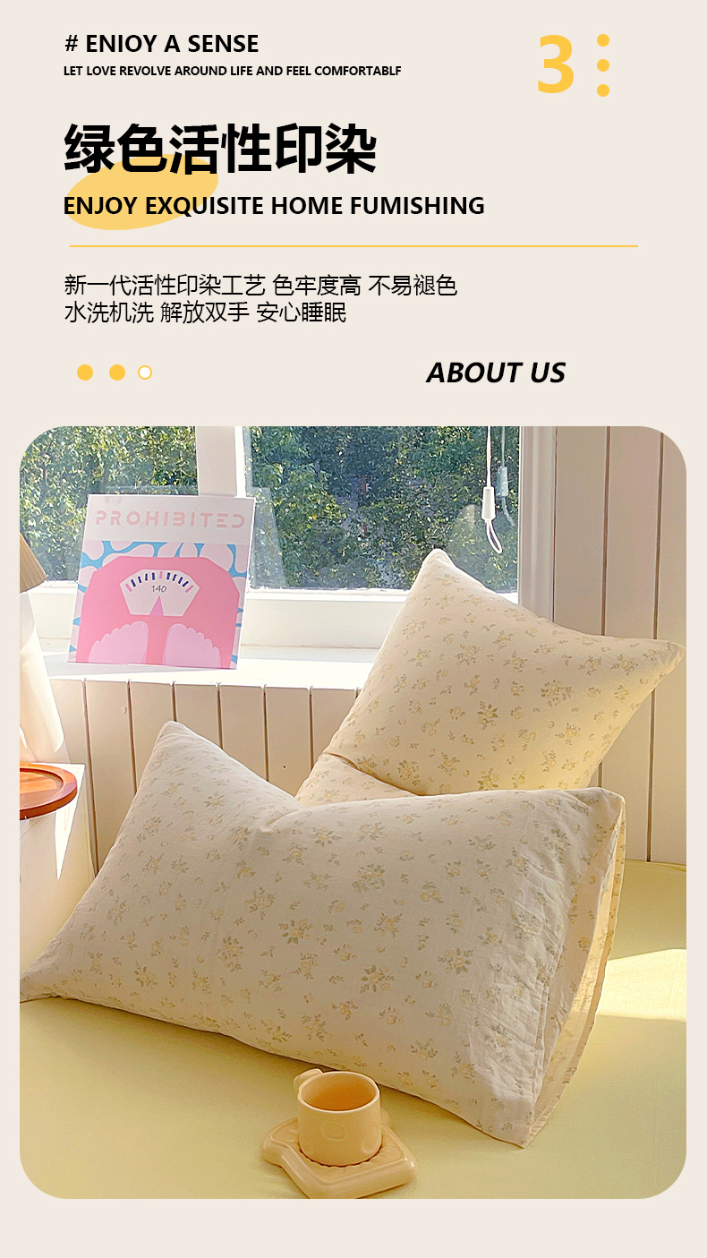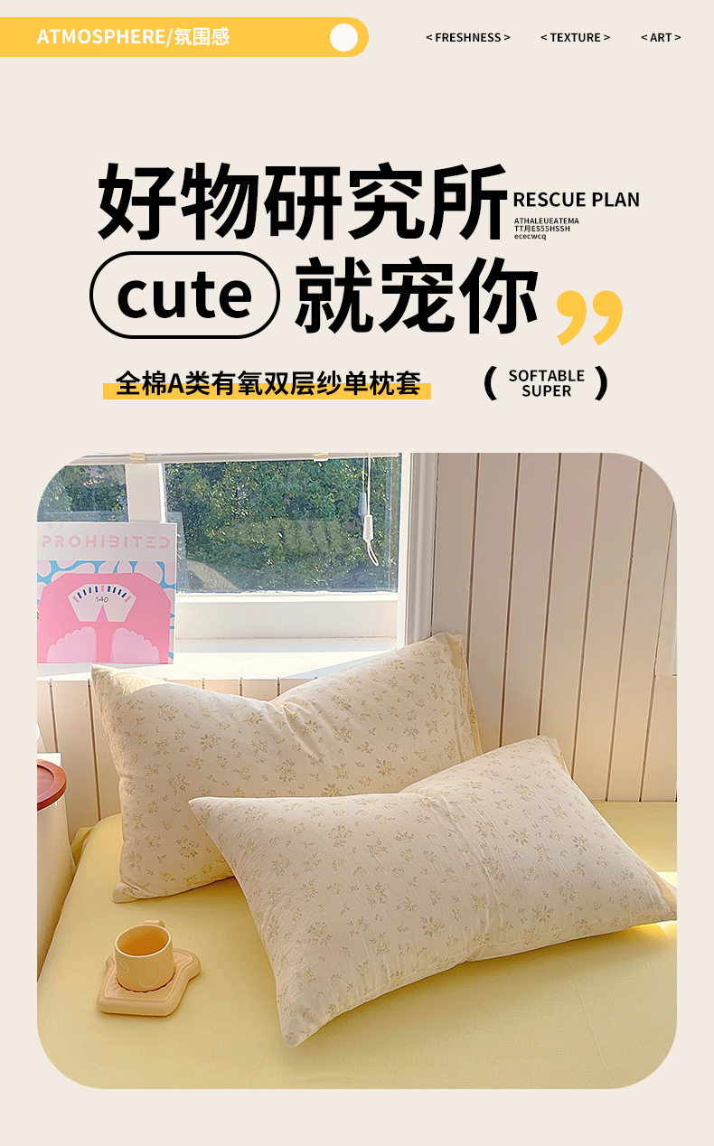 商品名称:春皖家纺 2026新款A类全棉有氧双层纱印花四件套单品系列-单枕套 晴丝一缕