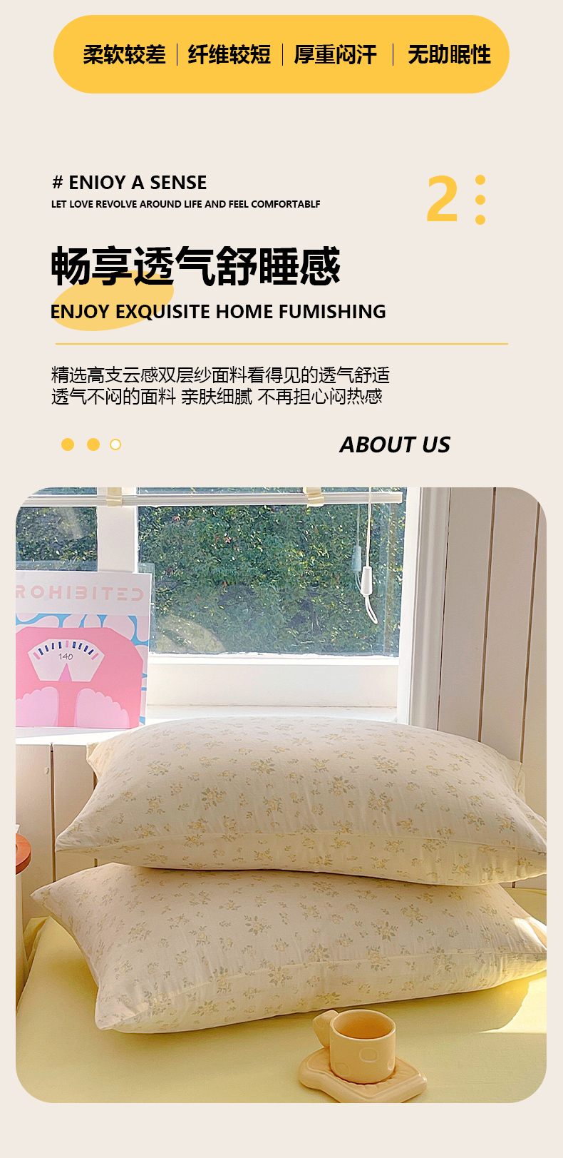 春皖家纺 2026新款A类全棉有氧双层纱印花四件套单品系列-单枕套 晴丝一缕