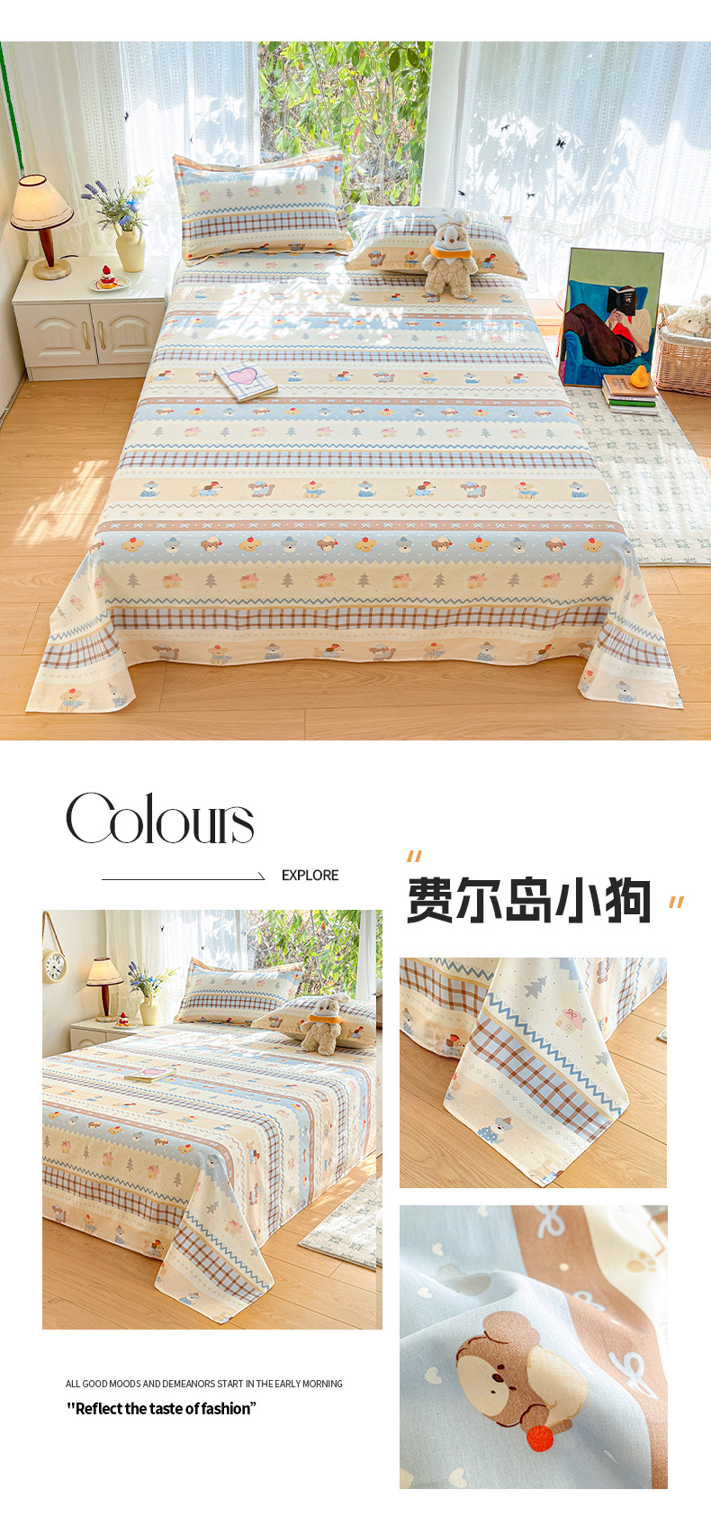 (总)菲梵家纺 2025新款A类无荧光全棉老粗布单品床单,安琪拉,春晓,卡侬-蓝,绿野,莓莓果,萌熊派对,浅春,清风,清梦,森沐,汐月,小时光,雅韵