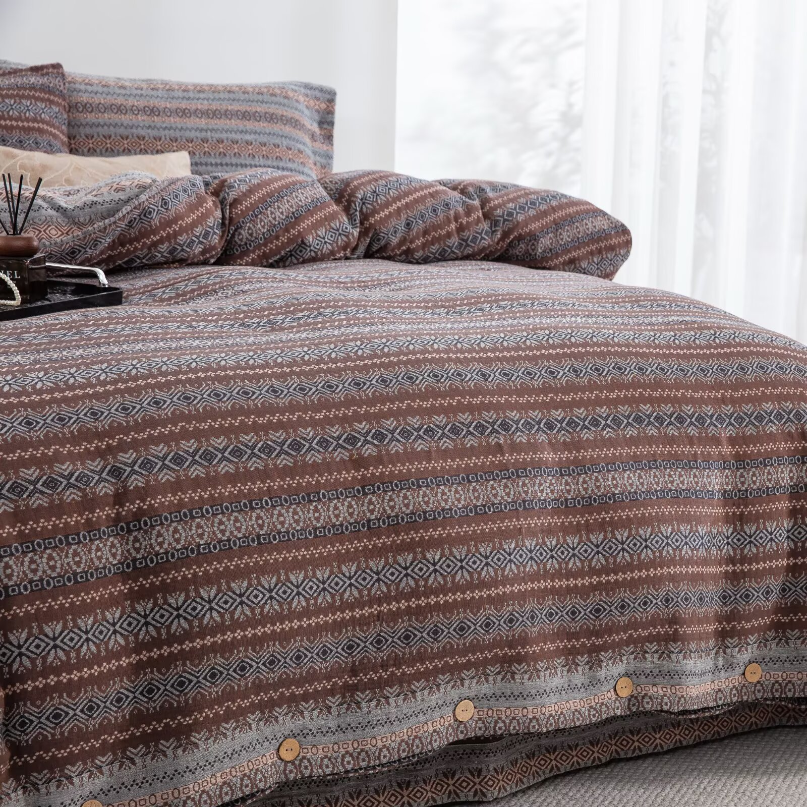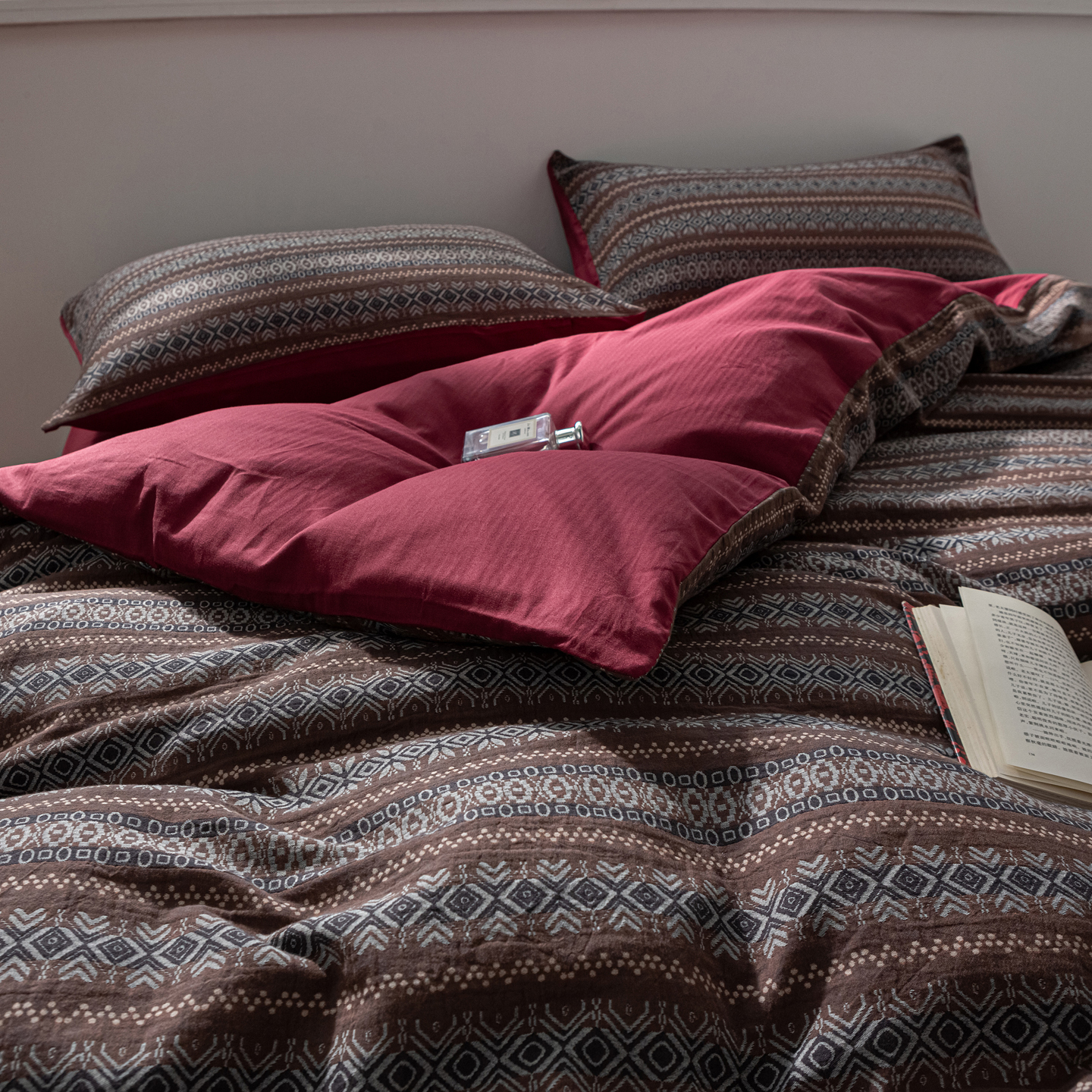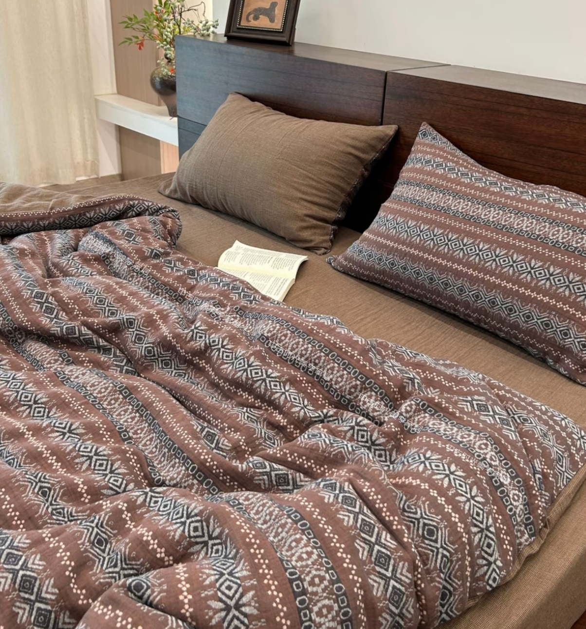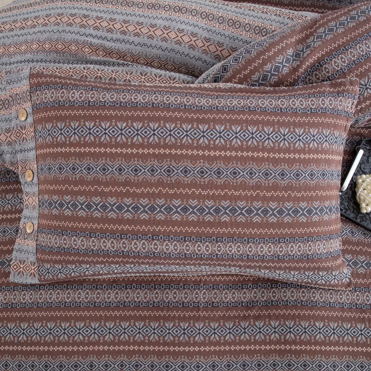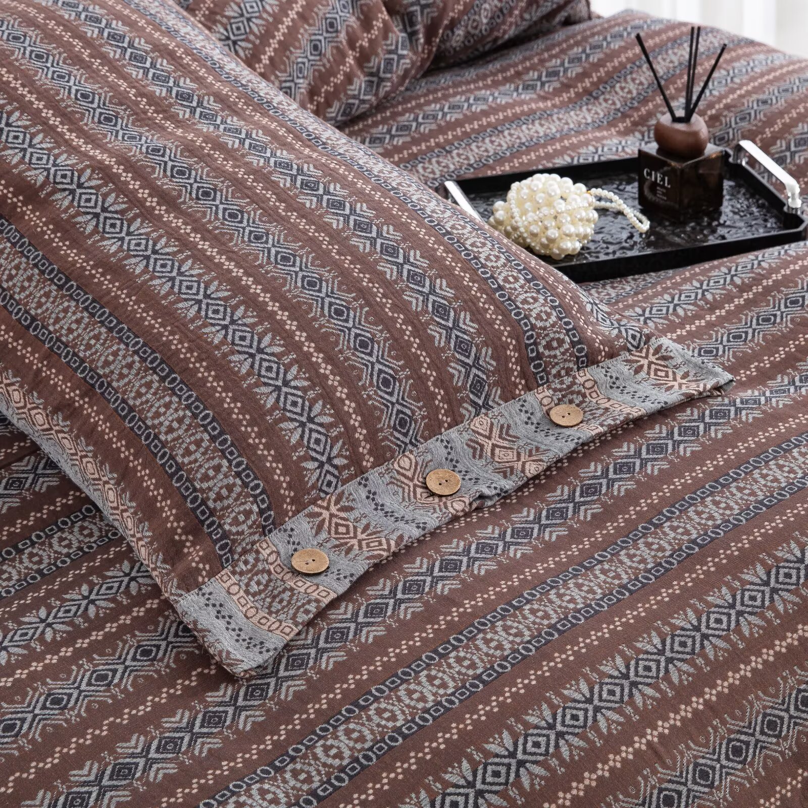 商品名称:仰望棉麻双层纱供应链 2025新款全棉色织提花双层纱四件套-波西米亚狂想曲 波西米亚-咖色