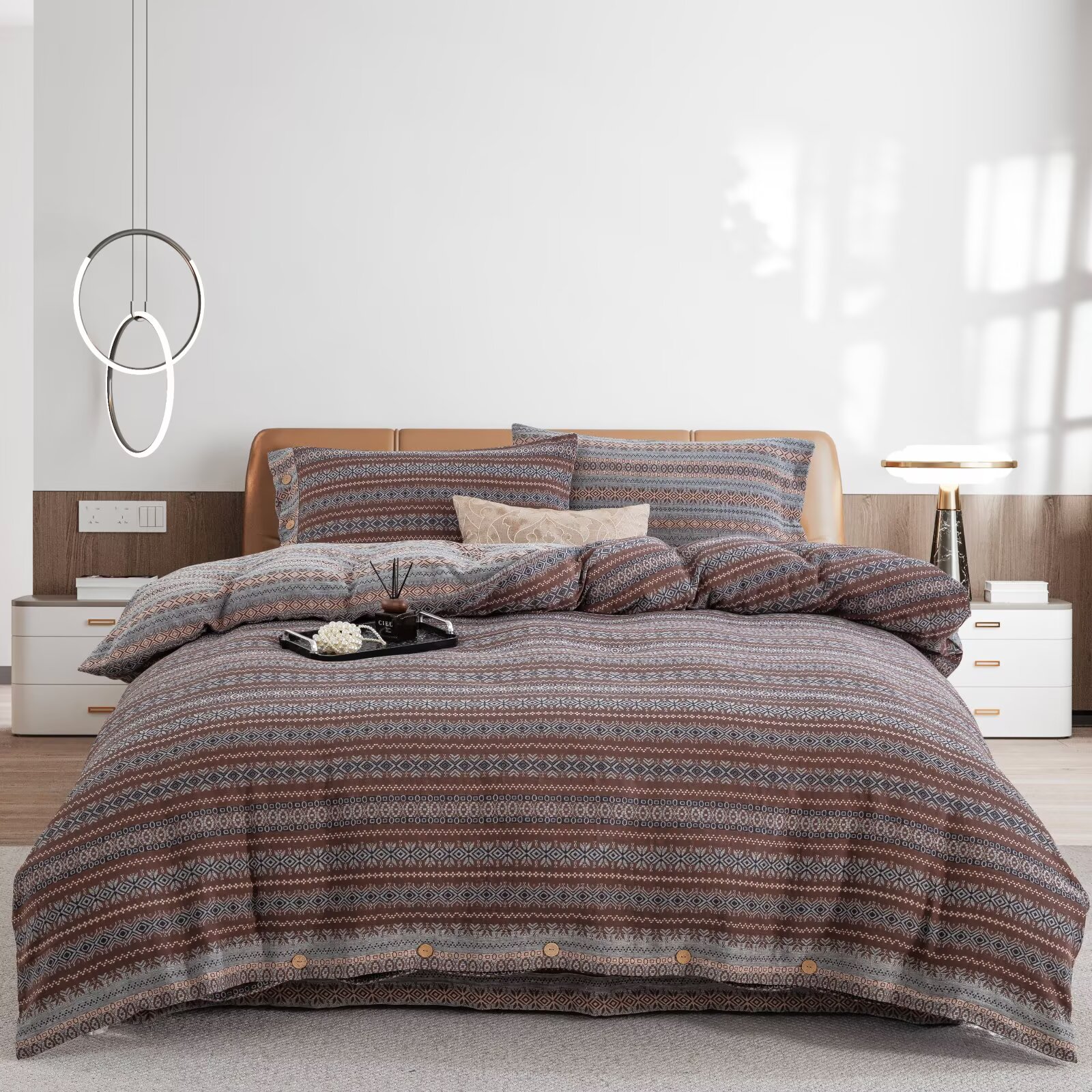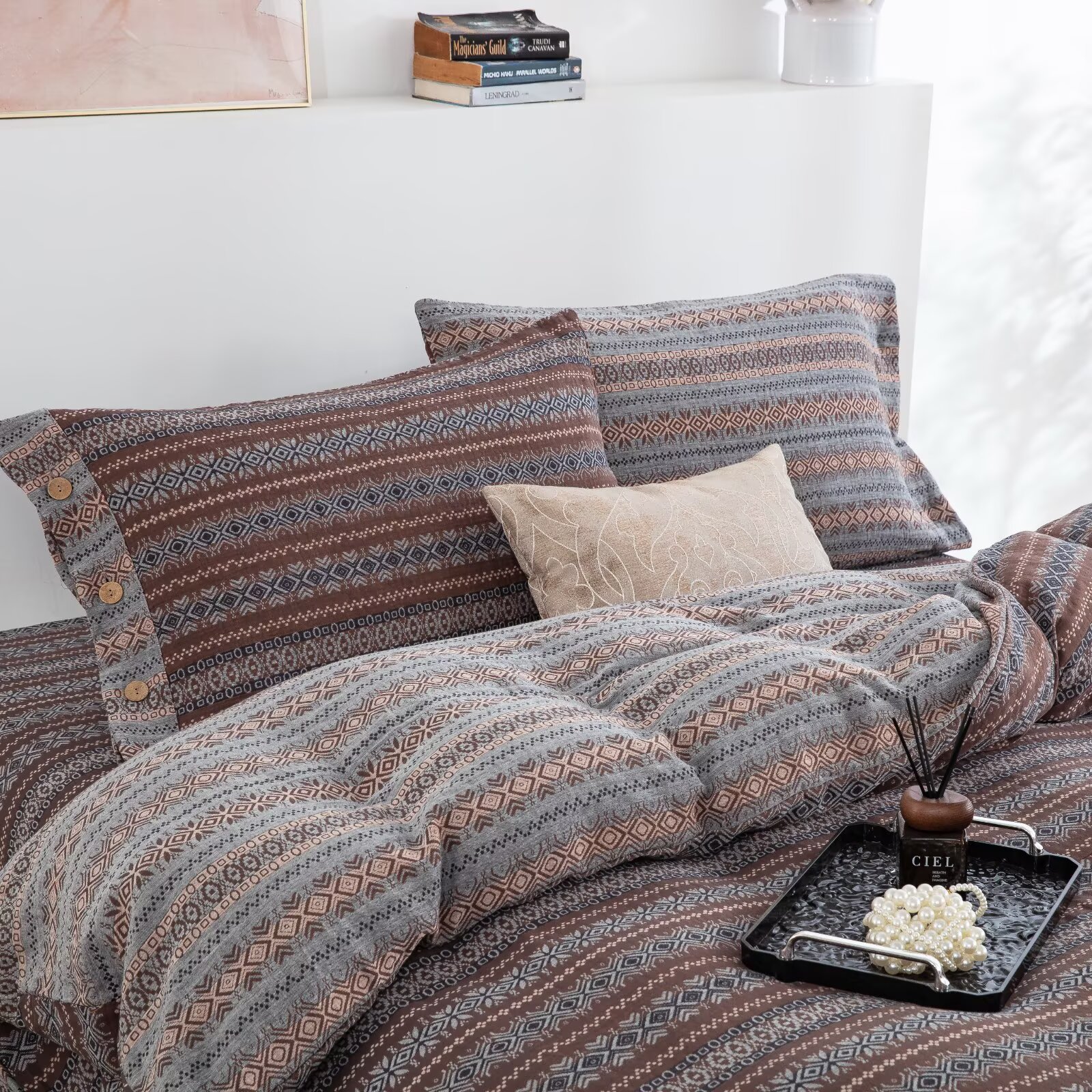 仰望棉麻双层纱供应链 2025新款全棉色织提花双层纱四件套-波西米亚狂想曲 波西米亚-咖色