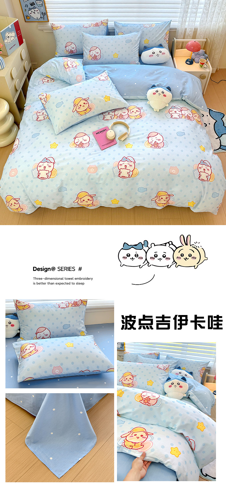 商品名称:朵希曼2026新款吉伊卡哇全棉印花四件套系列 波点吉伊卡哇