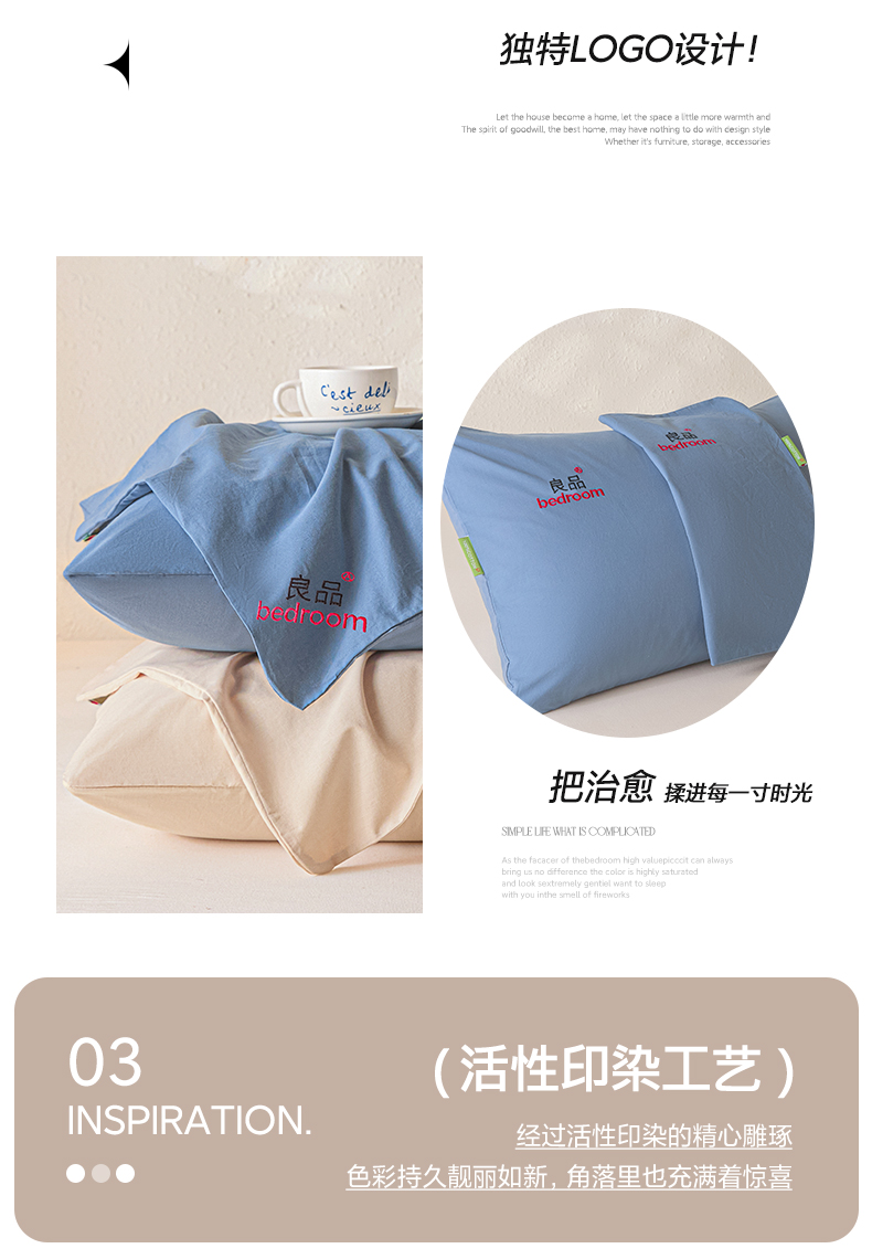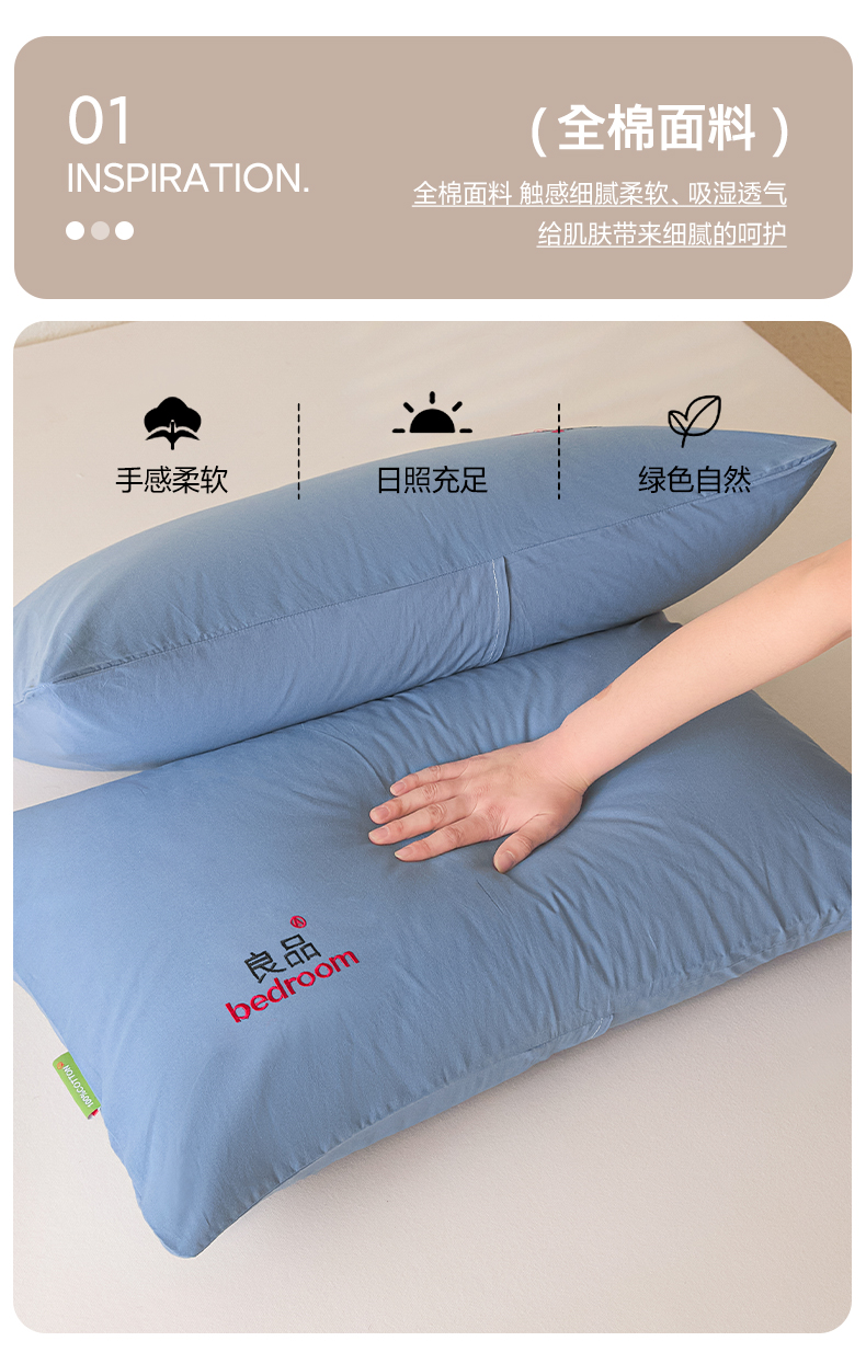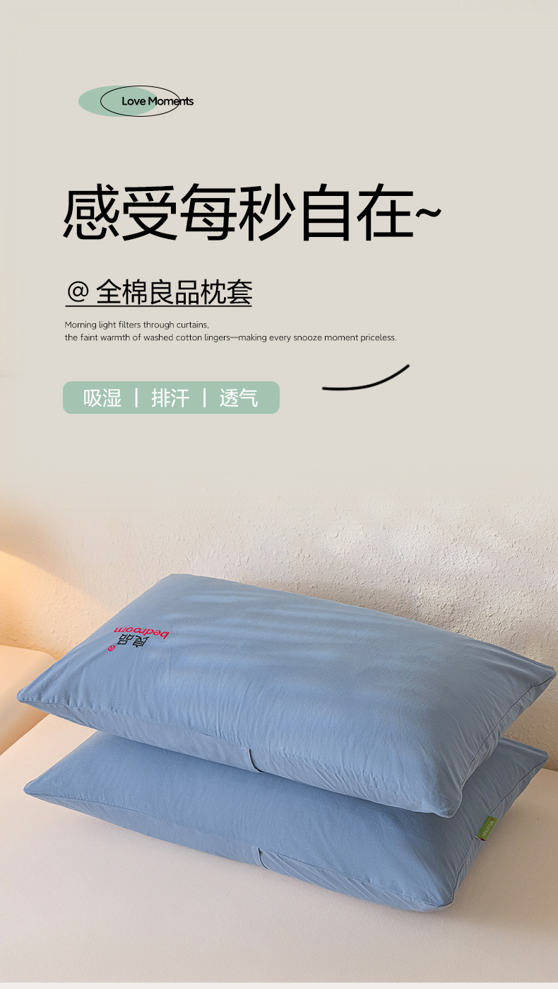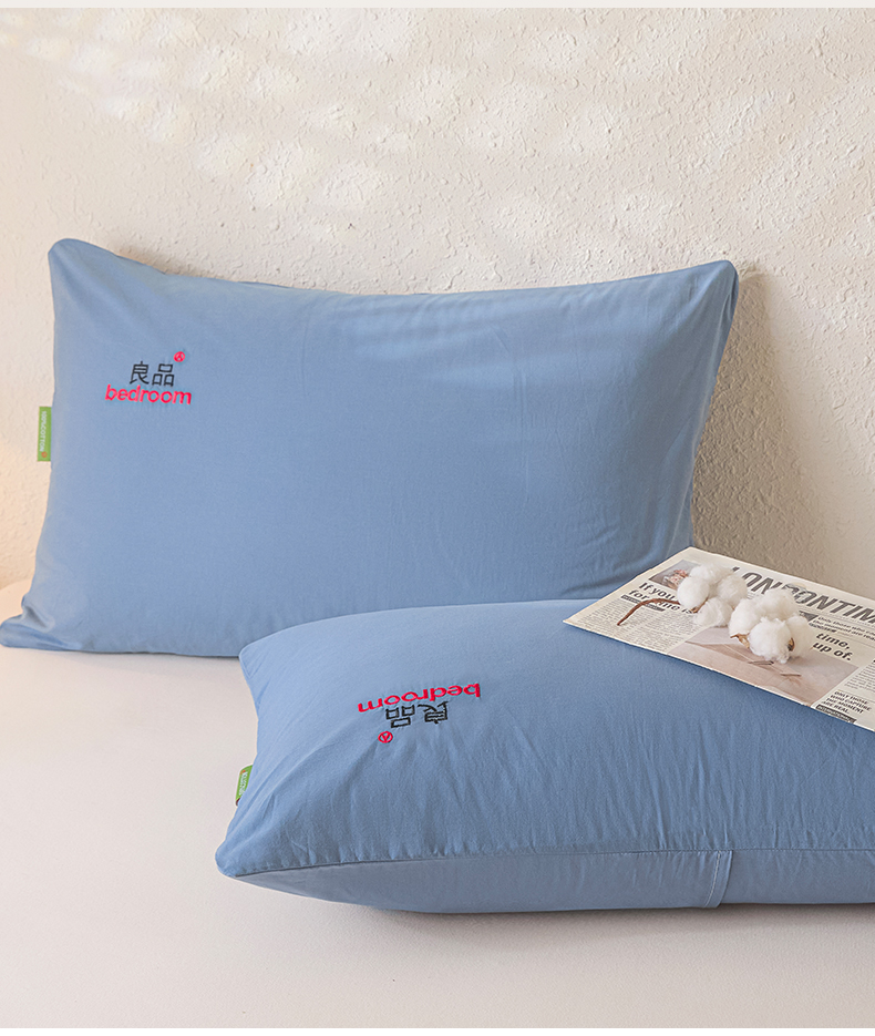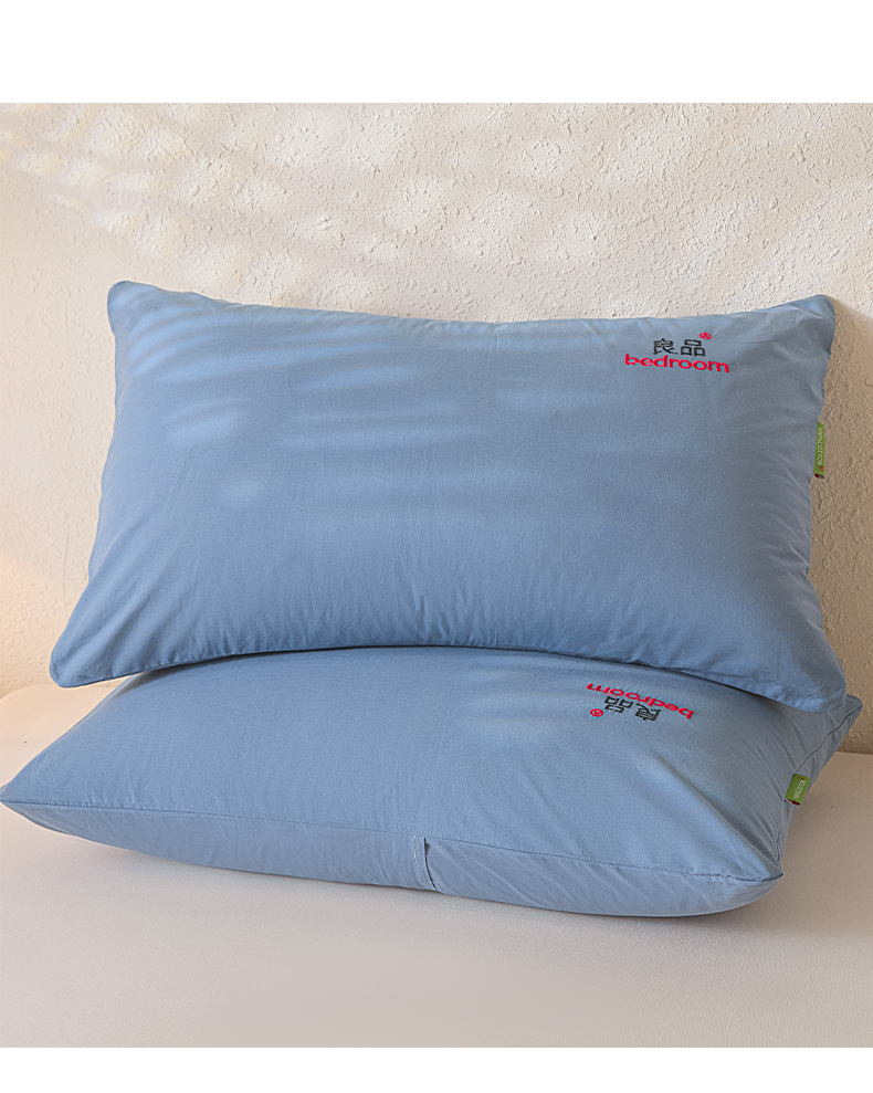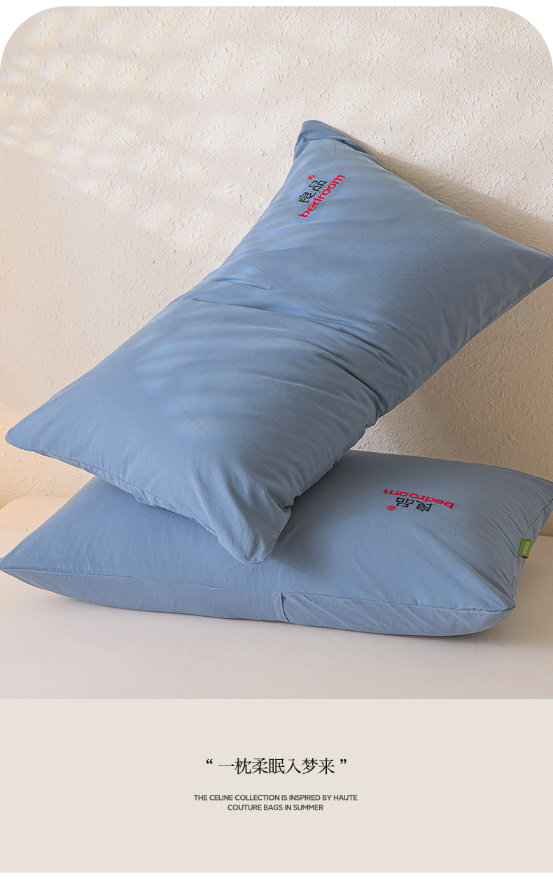 芬晴家纺 2026新款条纹纯色良品刺绣枕套 纯色-雾蓝