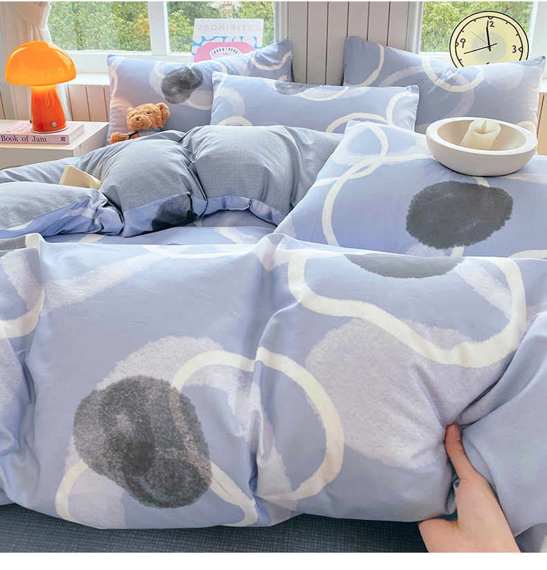 (总)小懒猪 2026新款全棉印花北欧风系列四件套,铂格纹,蓝灰格序,蓝絮银织,墨旋,清棱,素环影,素律,线影轻痕