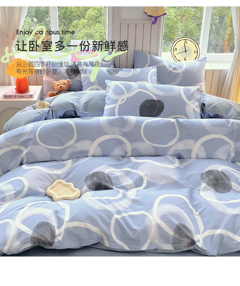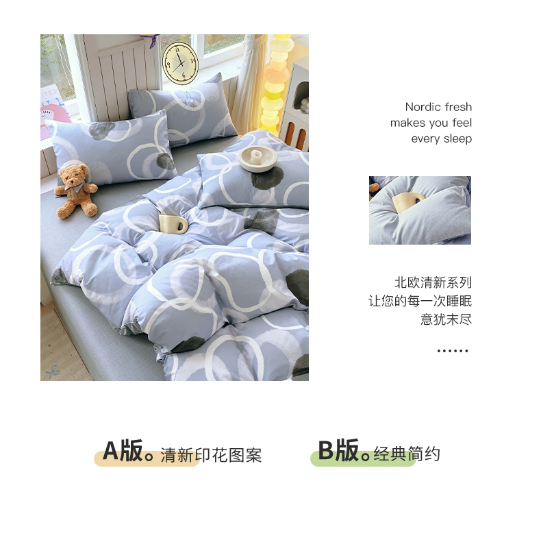商品名称:小懒猪 2026新款全棉印花北欧风系列四件套 素环影