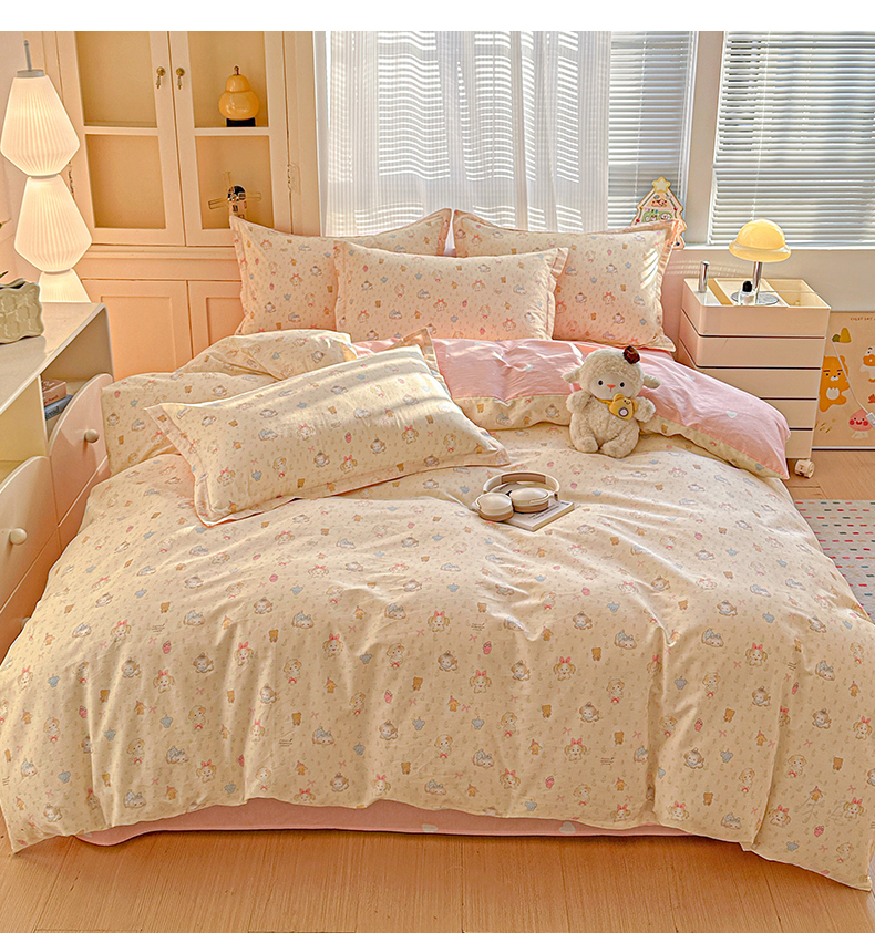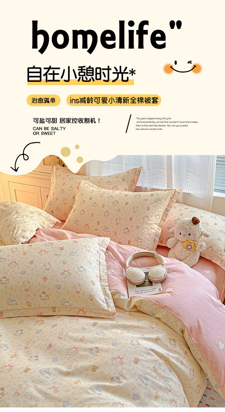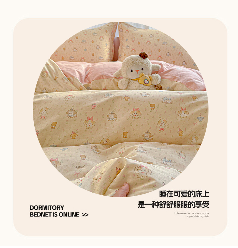 (总)春雨家居 2026新款全棉纯棉花ins减龄可爱小清新四件套(提供买家秀、质检报告、有预留缩水)),贝尔兰-兰,比星邦尼狗,布布迷宫,春漫庭,达乐宝贝,朵唯,芙莉,格子布丁狗,故事小黄花,韩系拼图,旧书折痕-蓝,蓝拼KT-兰,浪漫花园,洛克庄园-绿,萌趣汪汪,暮洛星,奶油凯蒂-兰,奶油羞羞狗,清秋夜曲,秋日确幸-豆沙,苏林-绿,苏糖-粉,夏日花莳,小菠萝,小猫时光-兰,心动庄园,星星童话园-兰,叶语轻喃-绿,玉海棠,芋泥小狗,醉梦惜花
