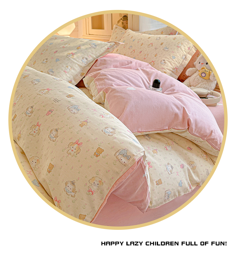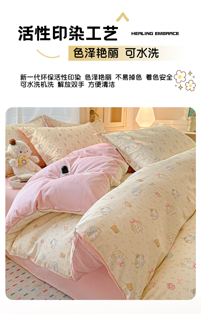 • 91家纺网 家纺一手货源 找家纺 春雨家居 2026新款全棉印花ins减龄可爱小清新单被套 萌趣汪汪
