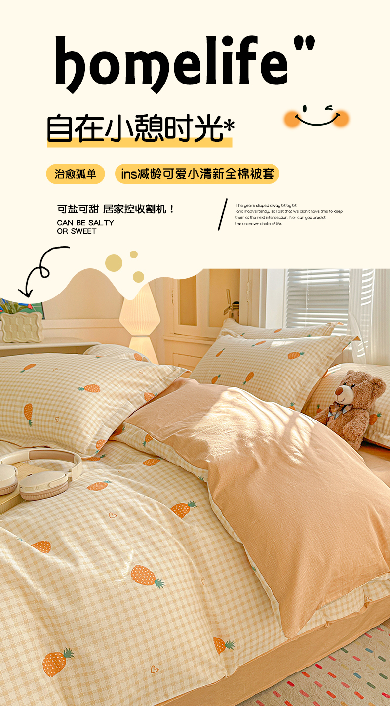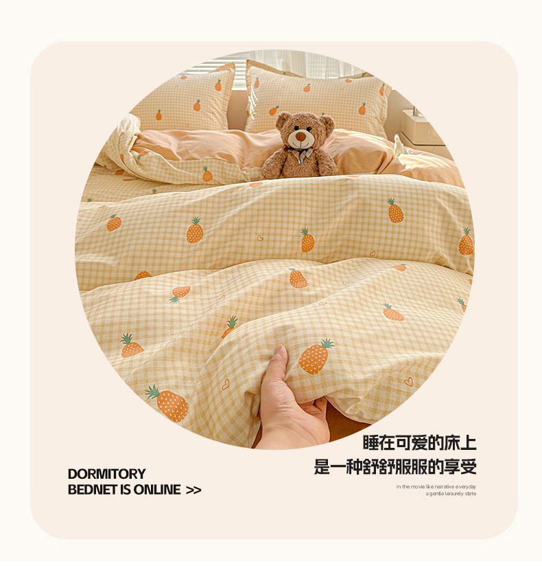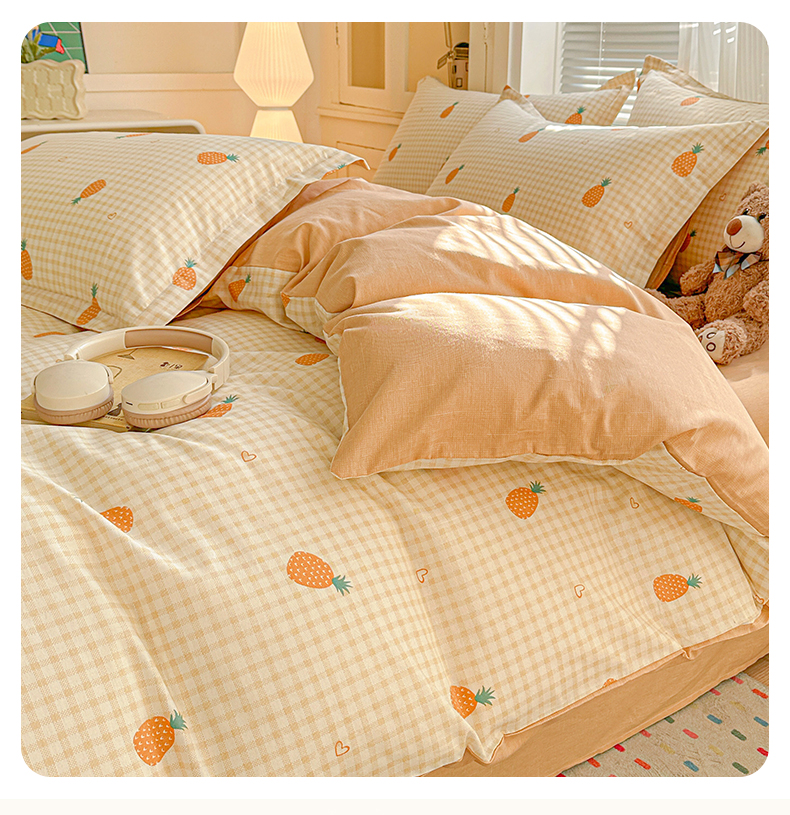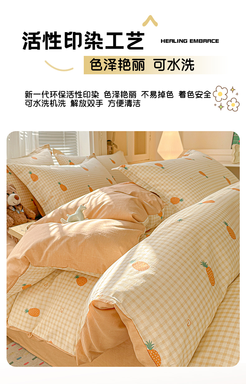 • 91家纺网 家纺一手货源 找家纺 春雨家居 2026新款全棉印花ins减龄可爱小清新单被套 小菠萝