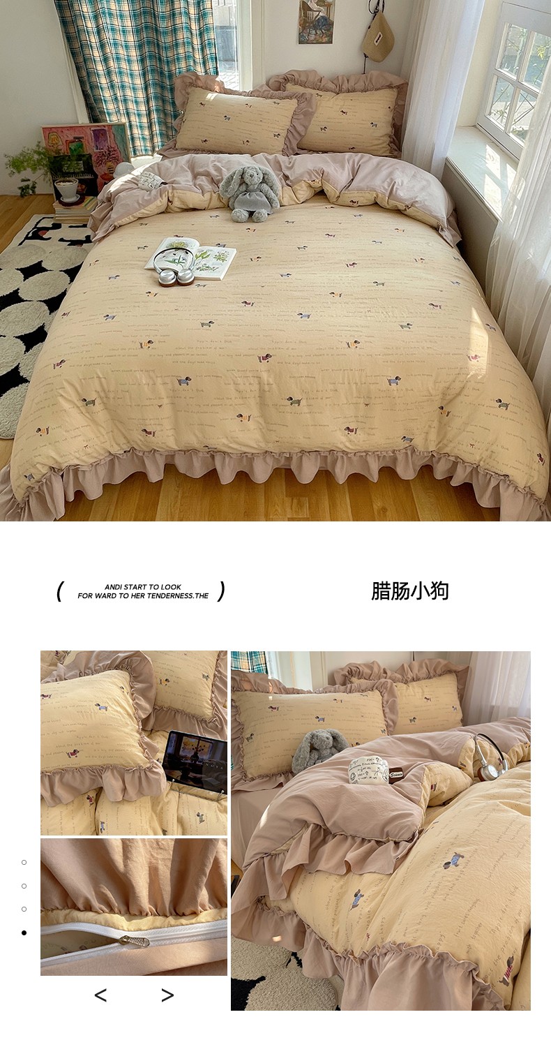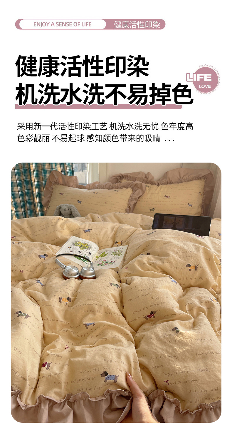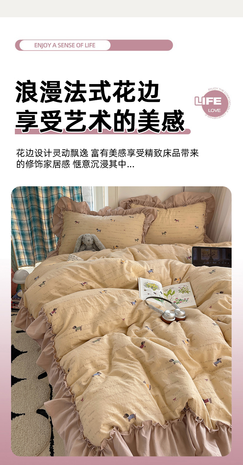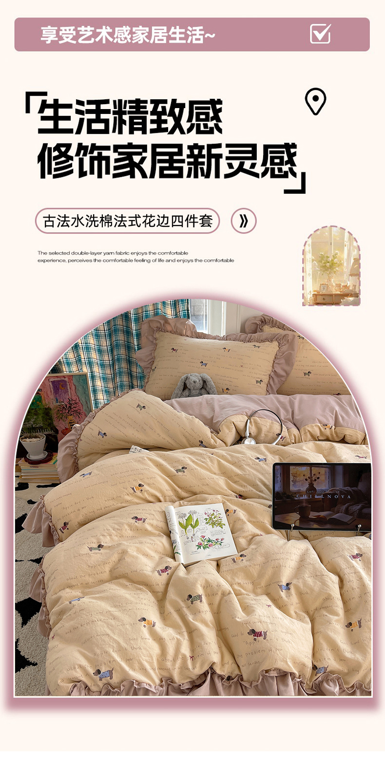 当前位置: 91家纺网 > 商品网购 > 床品套件 > 四件套 > 水洗棉四件套 > 凯洛奇 2026新款A类仿棉四件套古法水洗棉法式工艺花边套件(提供买家秀) 腊肠小狗