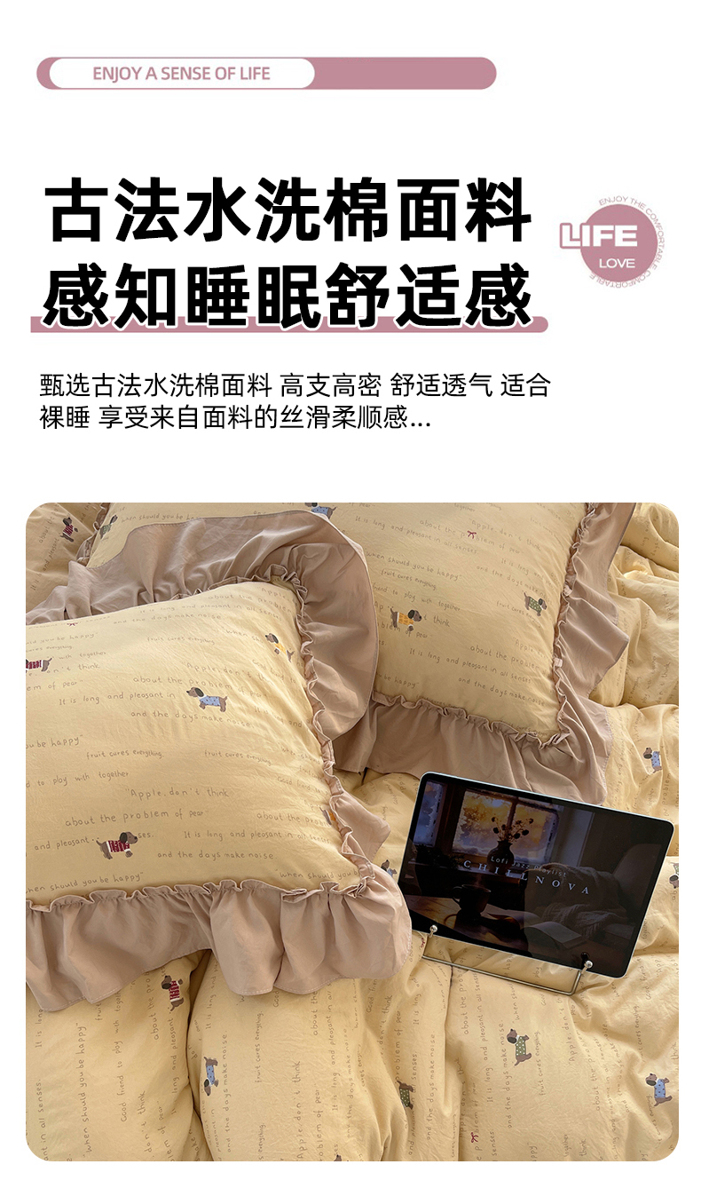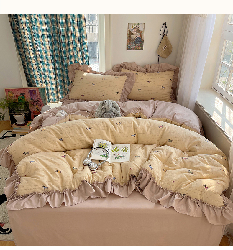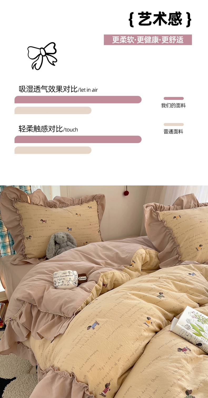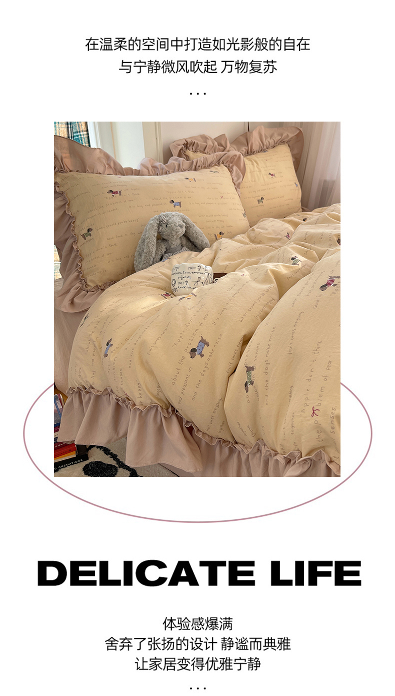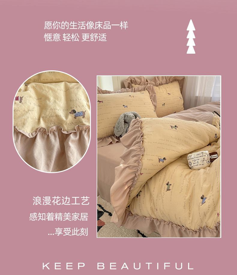 当前位置: 91家纺网 > 商品网购 > 床品套件 > 四件套 > 水洗棉四件套 > 凯洛奇 2026新款A类仿棉四件套古法水洗棉法式工艺花边套件(提供买家秀) 腊肠小狗