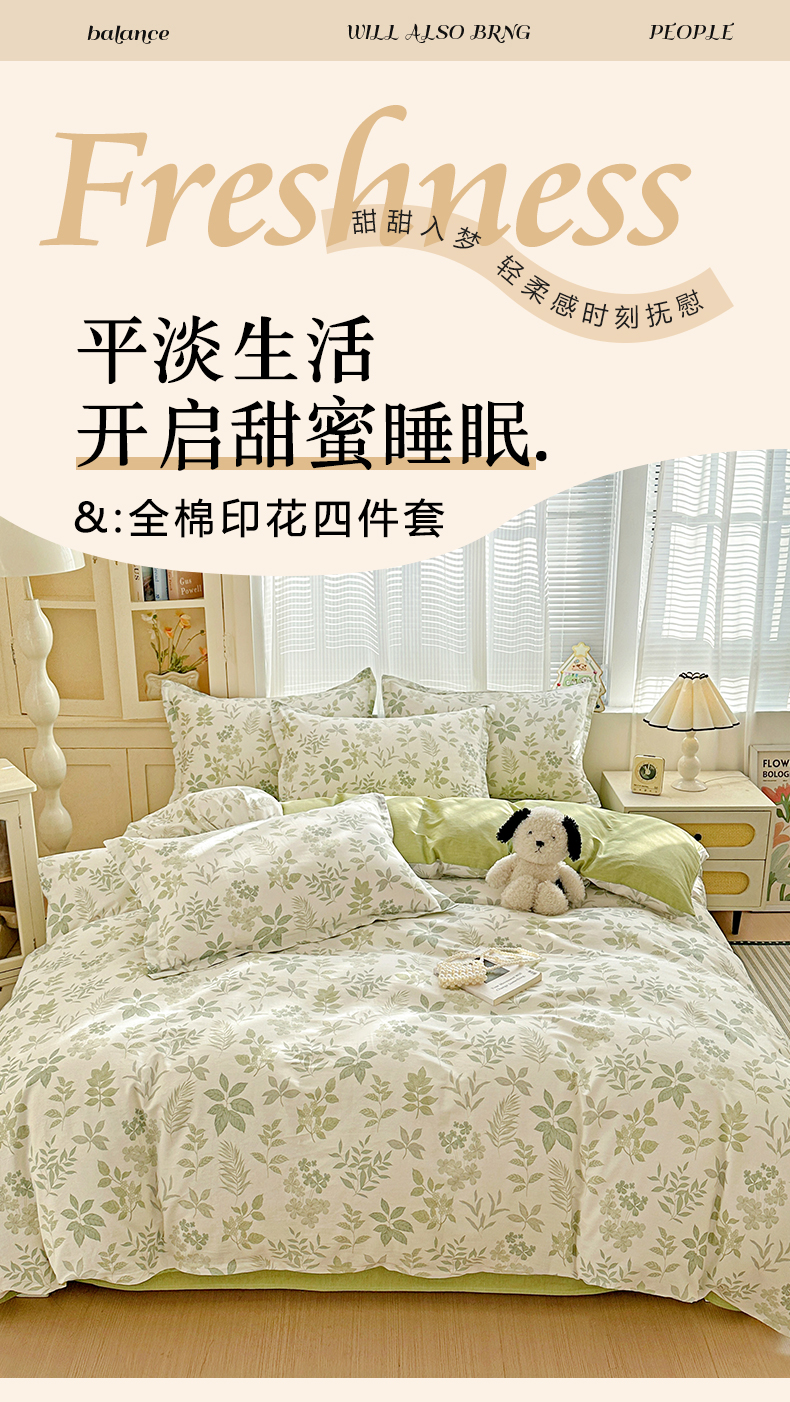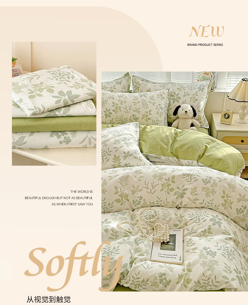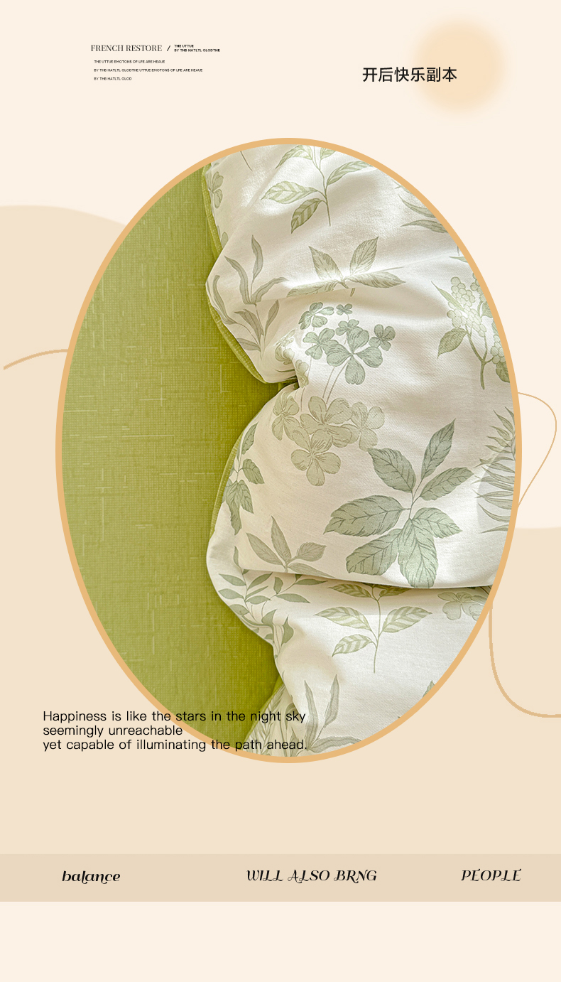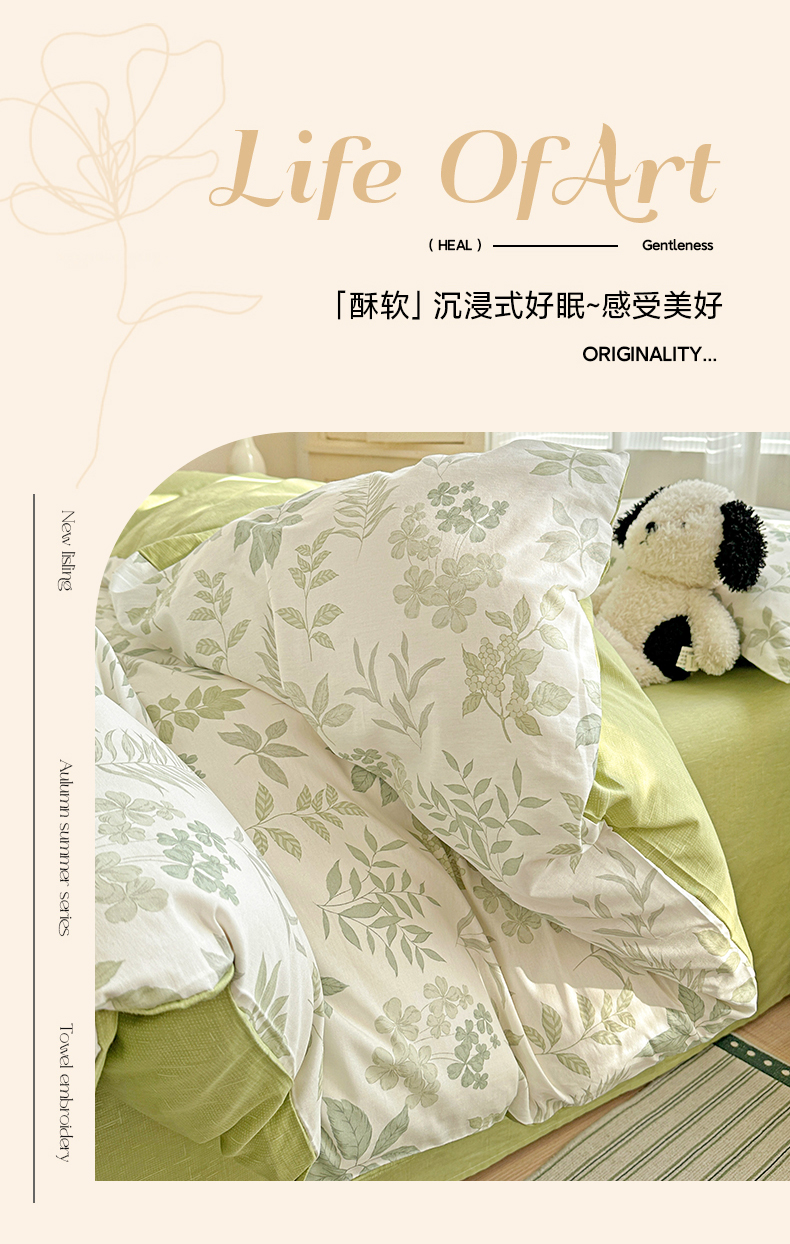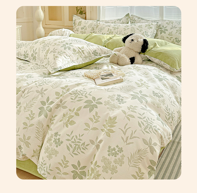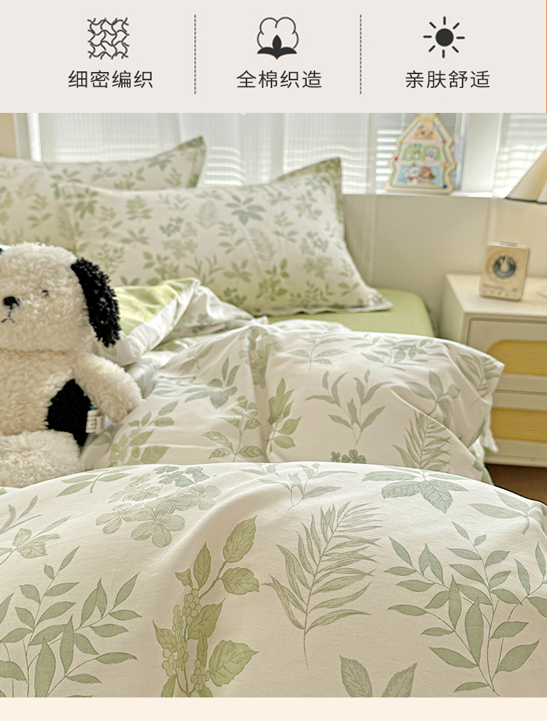 当前位置: 91家纺网 > 商品网购 > 床品套件 > 四件套 > 全棉普通四件套 > 春雨家居 2026新款全棉纯棉花ins减龄可爱小清新四件套 洛克庄园-绿
