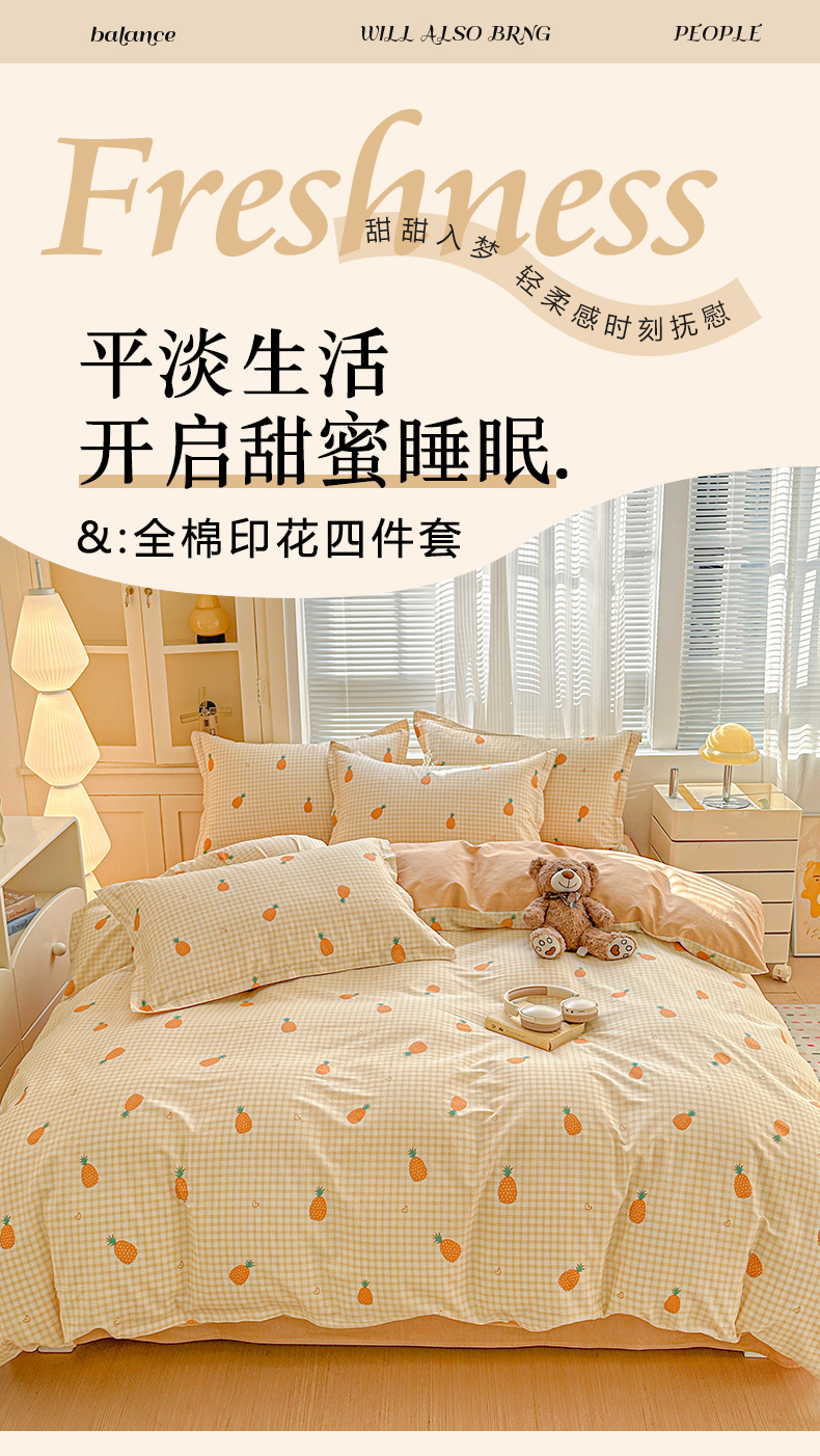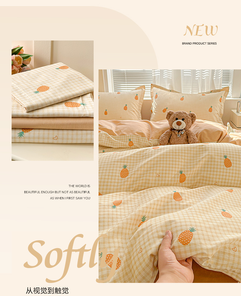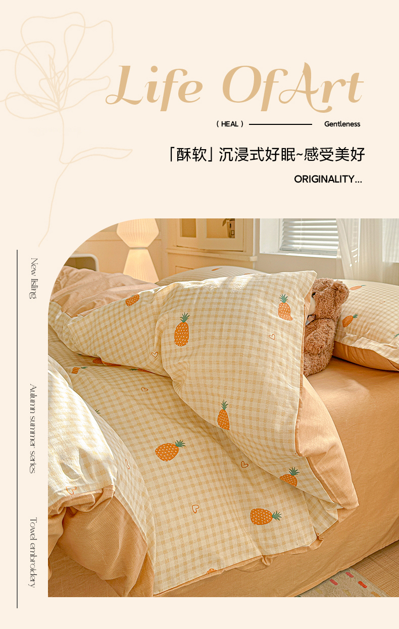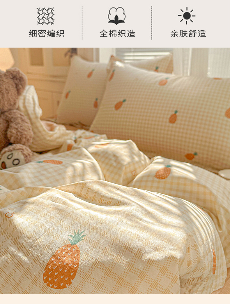 当前位置: 91家纺网 > 商品网购 > 床品套件 > 四件套 > 全棉普通四件套 > 春雨家居 2026新款全棉纯棉花ins减龄可爱小清新四件套 小菠萝