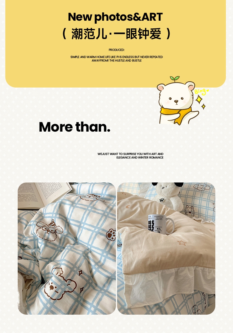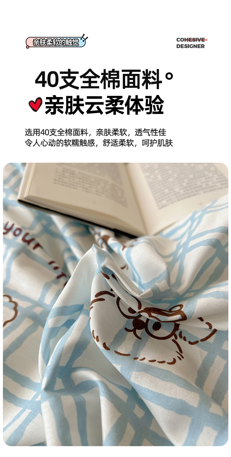(总)六巷胡同 2025新款INS卡通童趣混搭风全棉四件套第二系,混搭-蛋糕围兜熊,混搭-奶油酣睡熊,混搭-奈斯羞羞狗,混搭-小蓝格甜点,混搭-雪糕哈皮熊,混搭-月亮睡睡熊