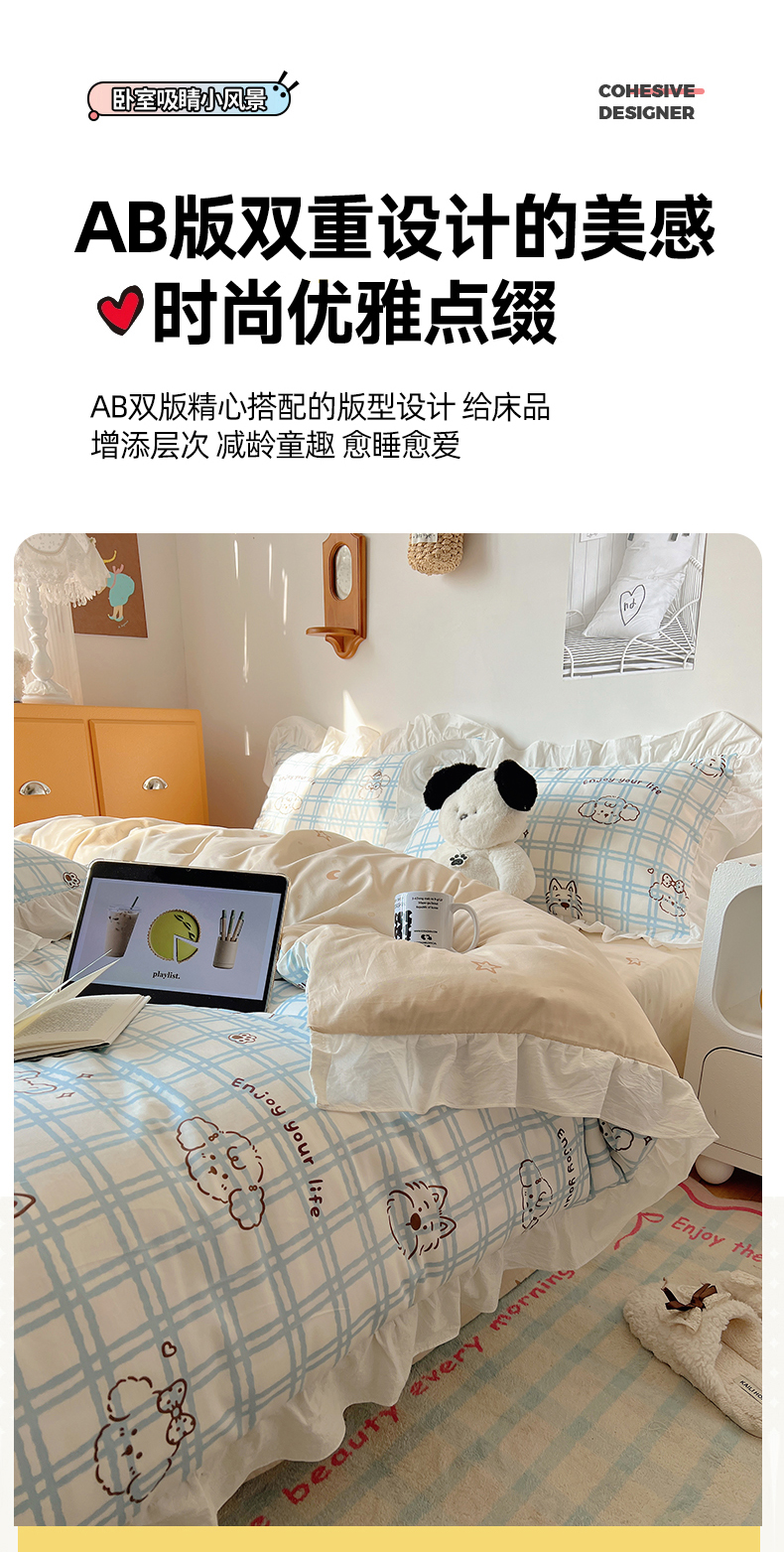 (总)六巷胡同 2025新款韩式INS卡通减龄花边款全棉四件套(第三系),花边波点嘟嘟猫,花边点点面包犬,花边调皮蔷薇狗,花边法棍滑板狗,花边粉格元气猫,花边哈喽泡芙猫,花边蓝格邦尼熊,花边蓝格插画犬,花边泡芙萌趣狗,花边森林音乐会,花边仙人掌粉象,花边熊熊猫咪崽,花边郁金香狗狗