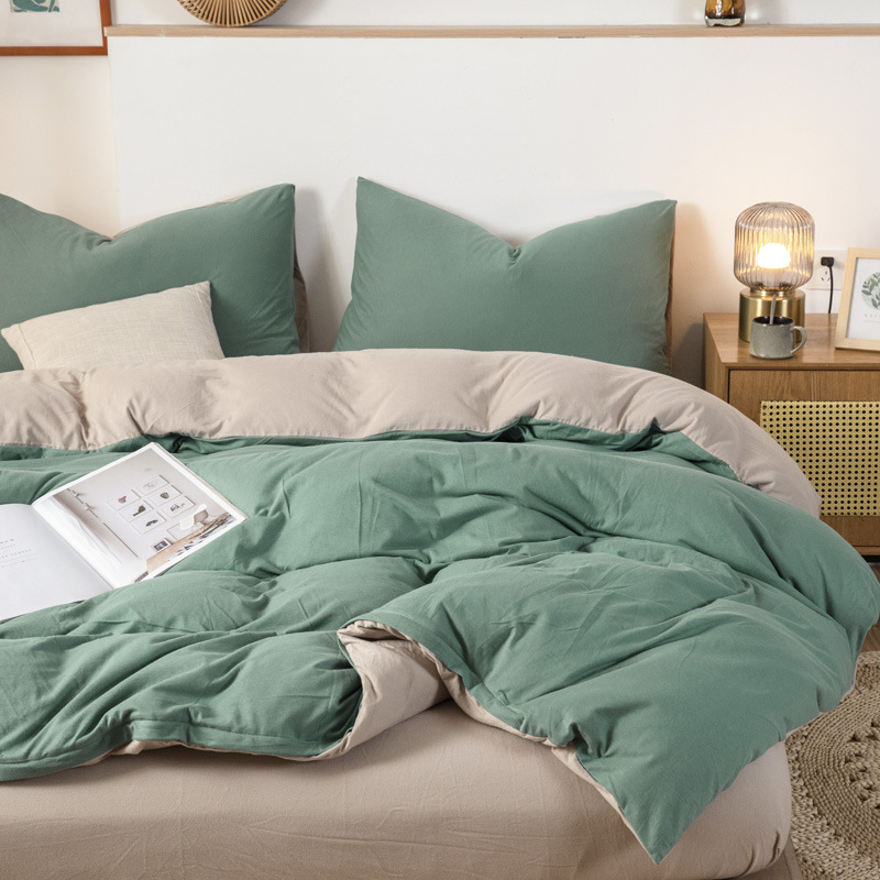 【天竺棉拼色四件套】拼色天竺棉纯棉针织棉四件套纯色拼色新疆天竺棉裸睡,白茶清欢,陌上春芽,香芋紫,紫粉+奶茶