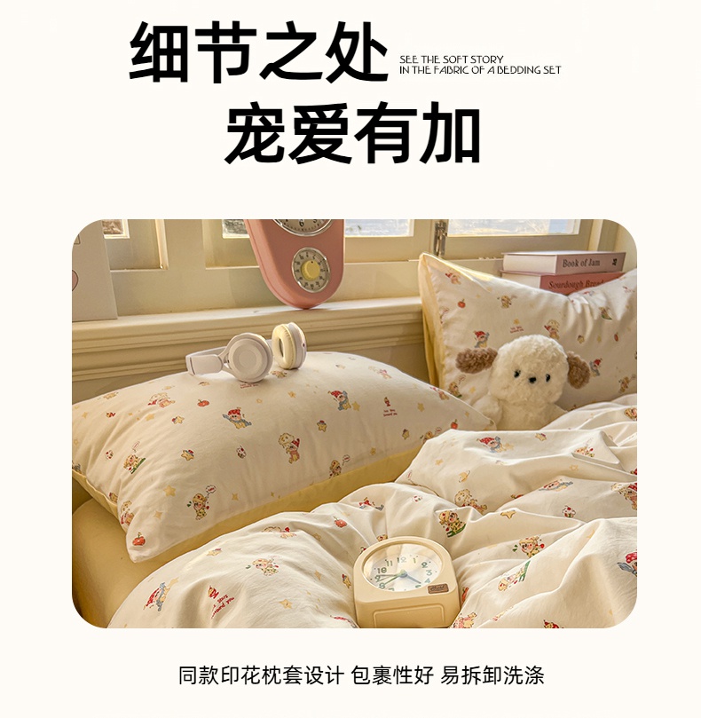 当前位置: 91家纺网 > 商品网购 > 床品套件 > 四件套 > 水洗棉四件套 > 思诺羽床笠 2026新款古法水洗仿棉云感棉三件套四件套 嗨皮星星人